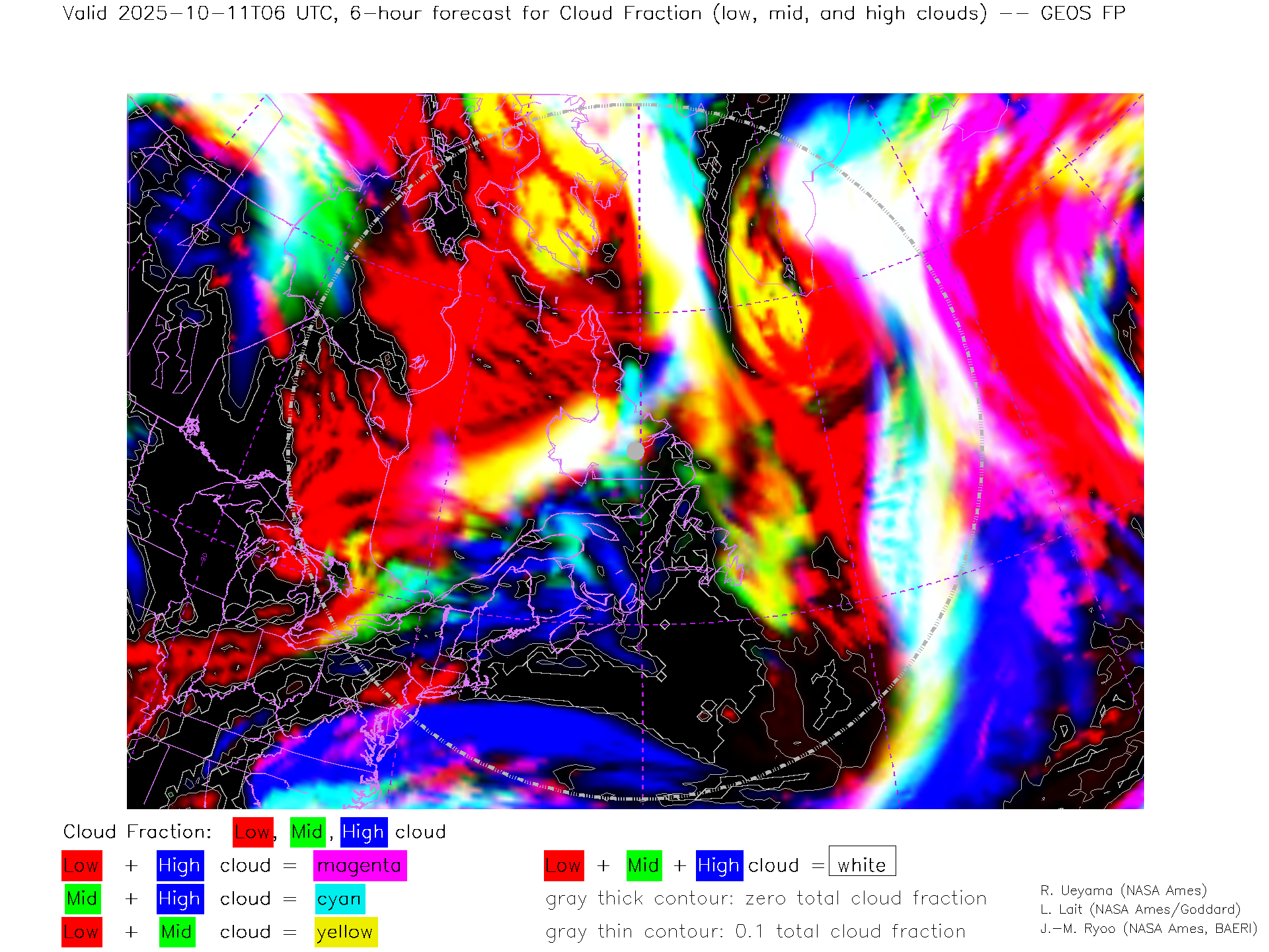 GEOS Forecast Low-, Mid- and High-level Cloud Fraction