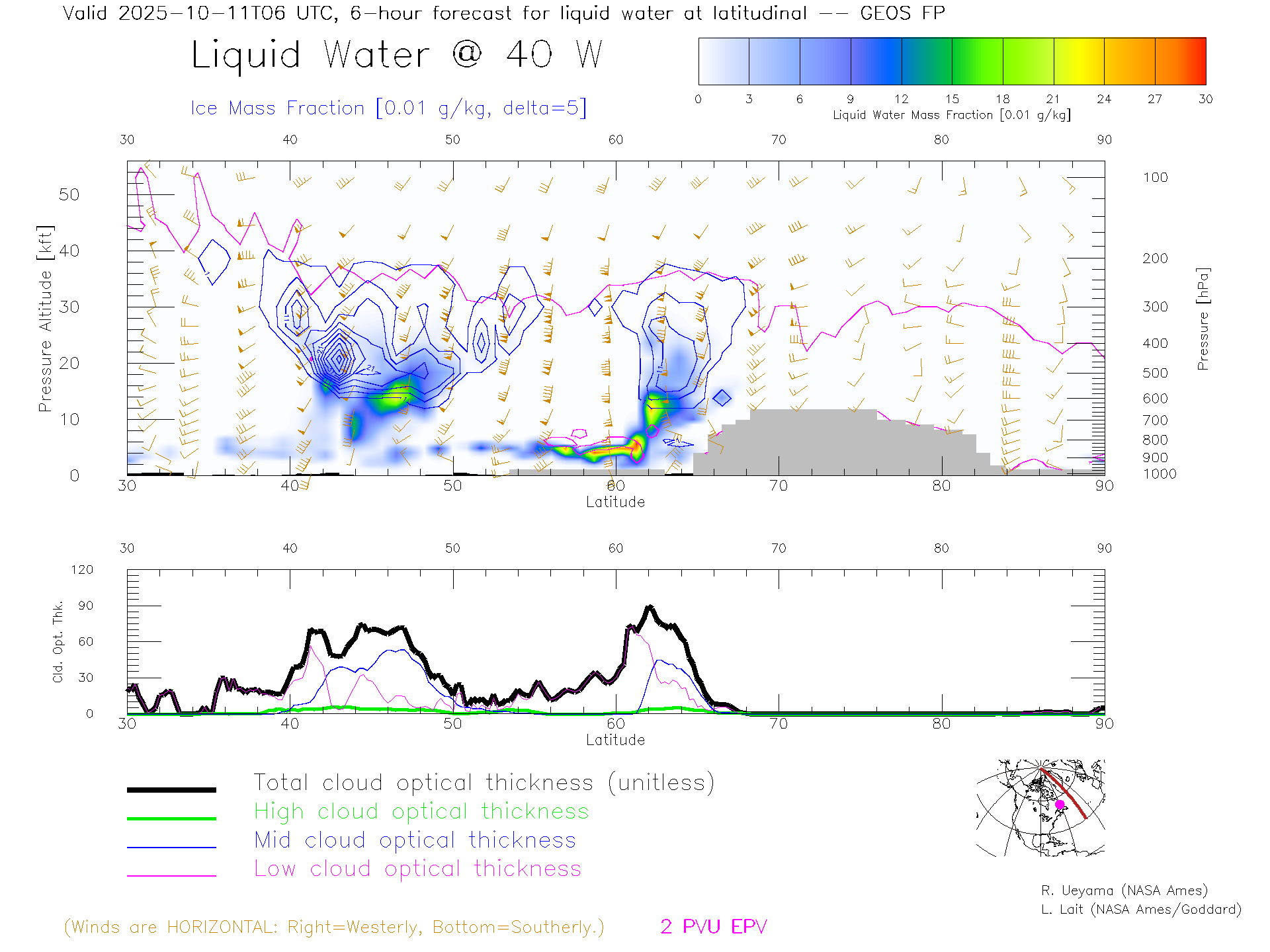 GEOS Forecast Cloud Water Content X-Section (40 W)