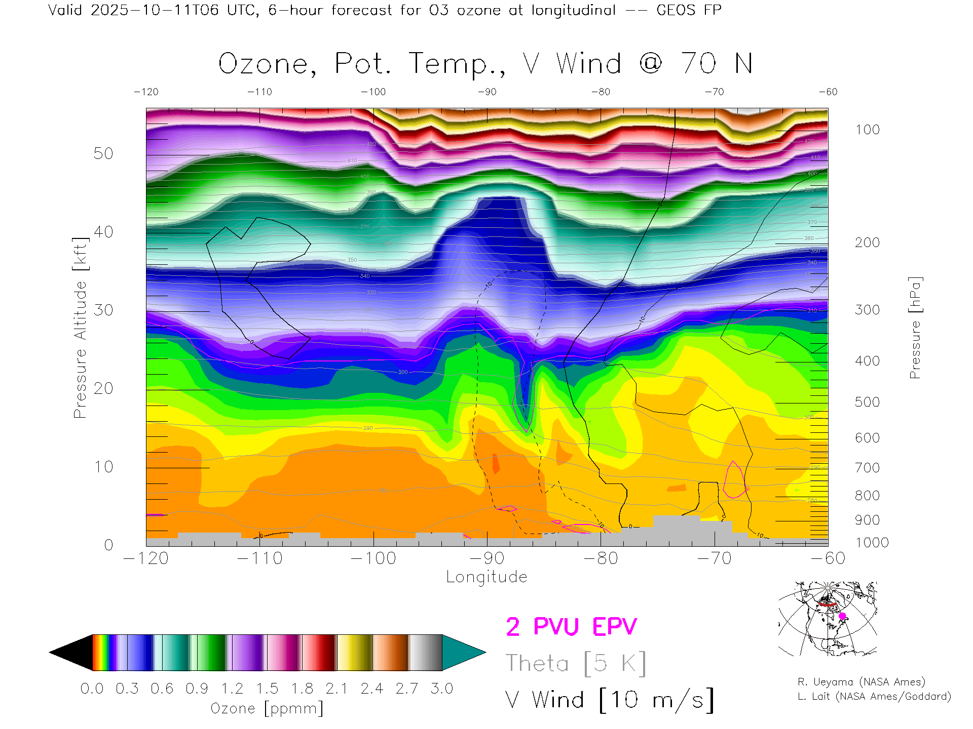 GEOS Forecast Ozone X-Section (70 N)