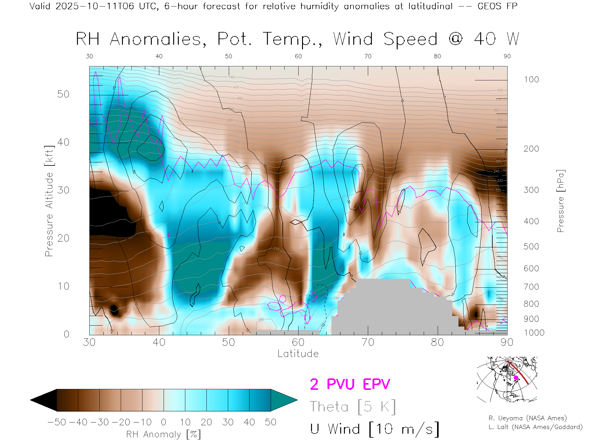 GEOS Forecast Rel. Hum. X-Section (40 W)