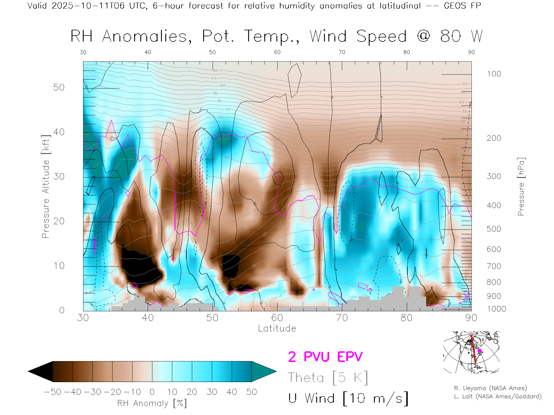 GEOS Forecast Rel. Hum. X-Section (80 W)