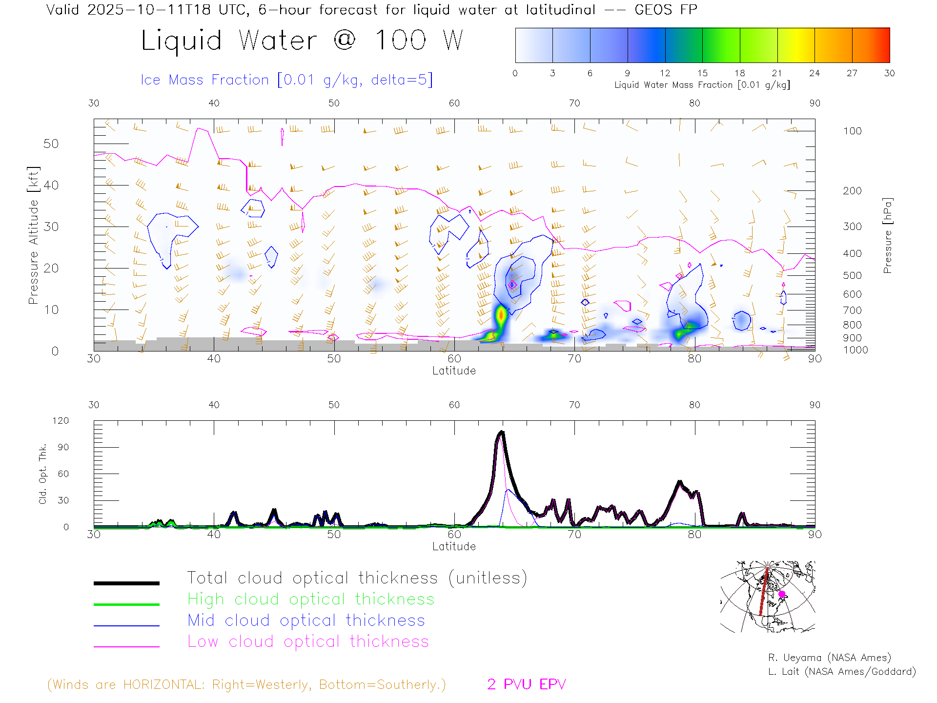 GEOS Forecast Cloud Water Content X-Section (100 W)