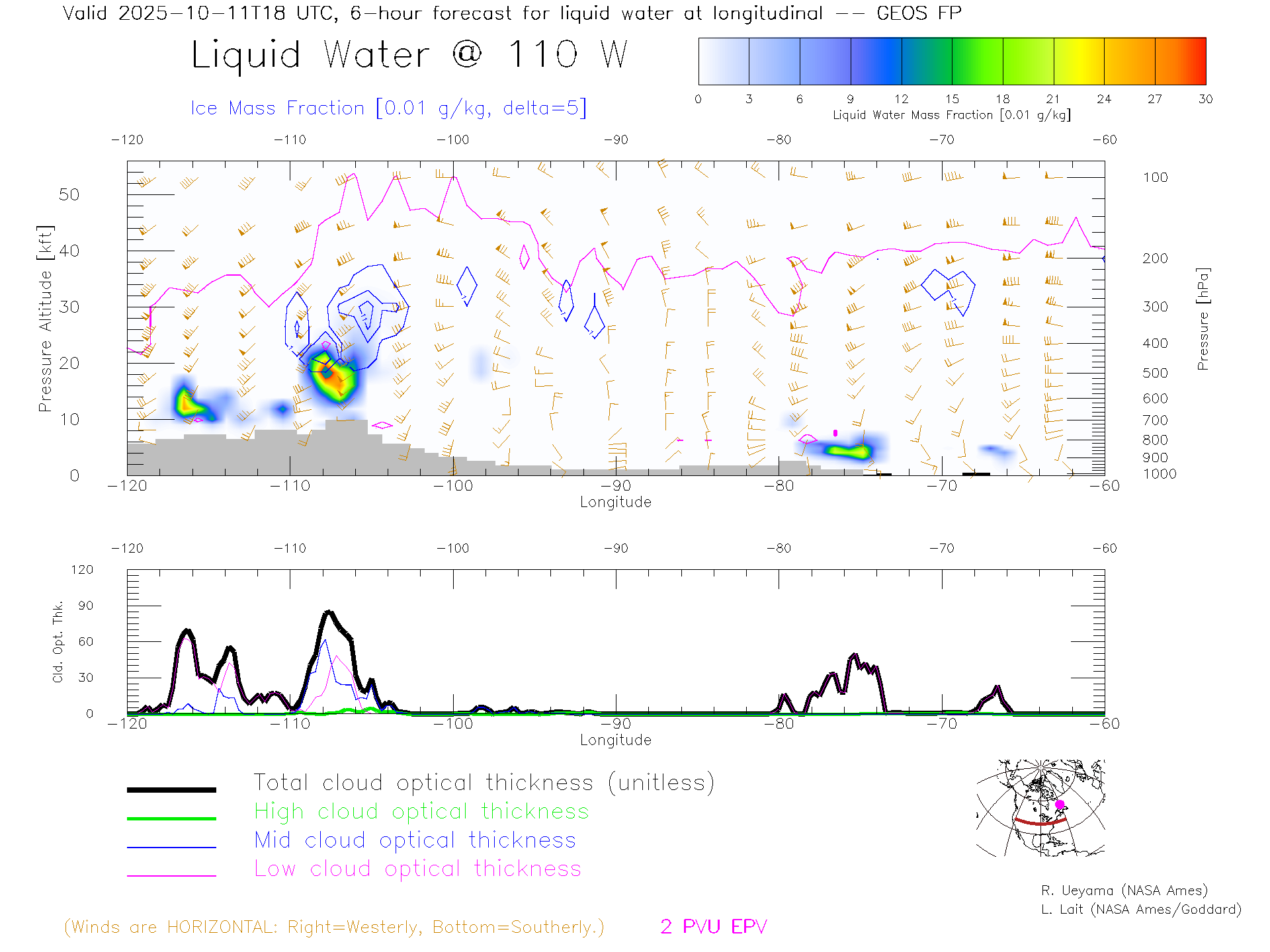 GEOS Forecast Cloud Water Content X-Section (40 N)