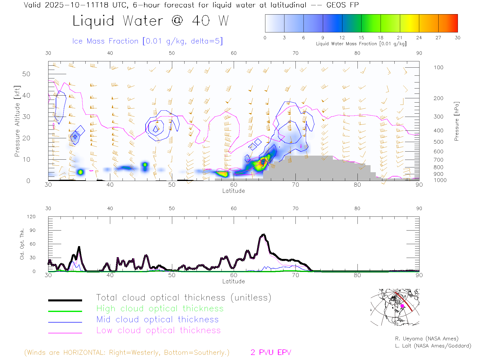 GEOS Forecast Cloud Water Content X-Section (40 W)
