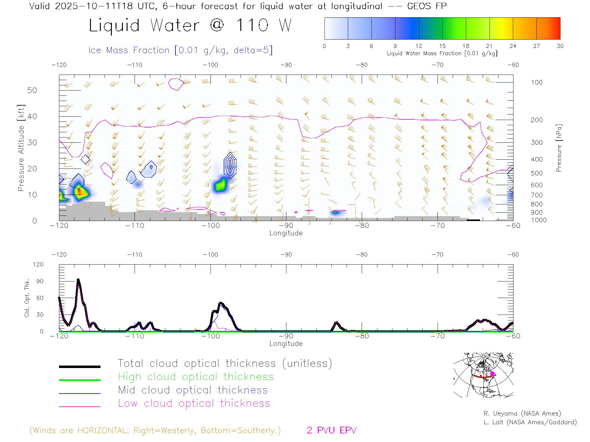 GEOS Forecast Cloud Water Content X-Section (50 N)