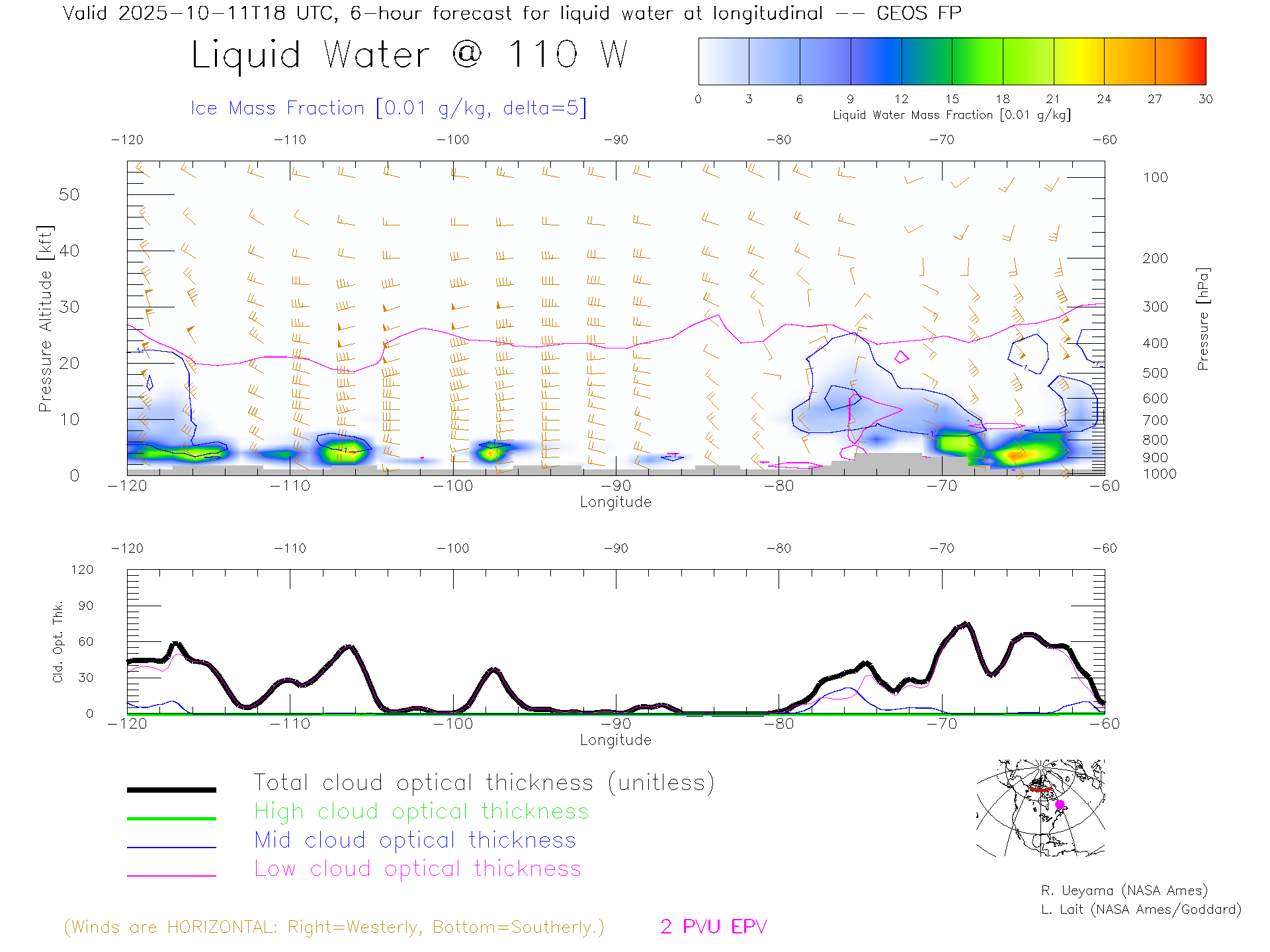 GEOS Forecast Cloud Water Content X-Section (70 N)