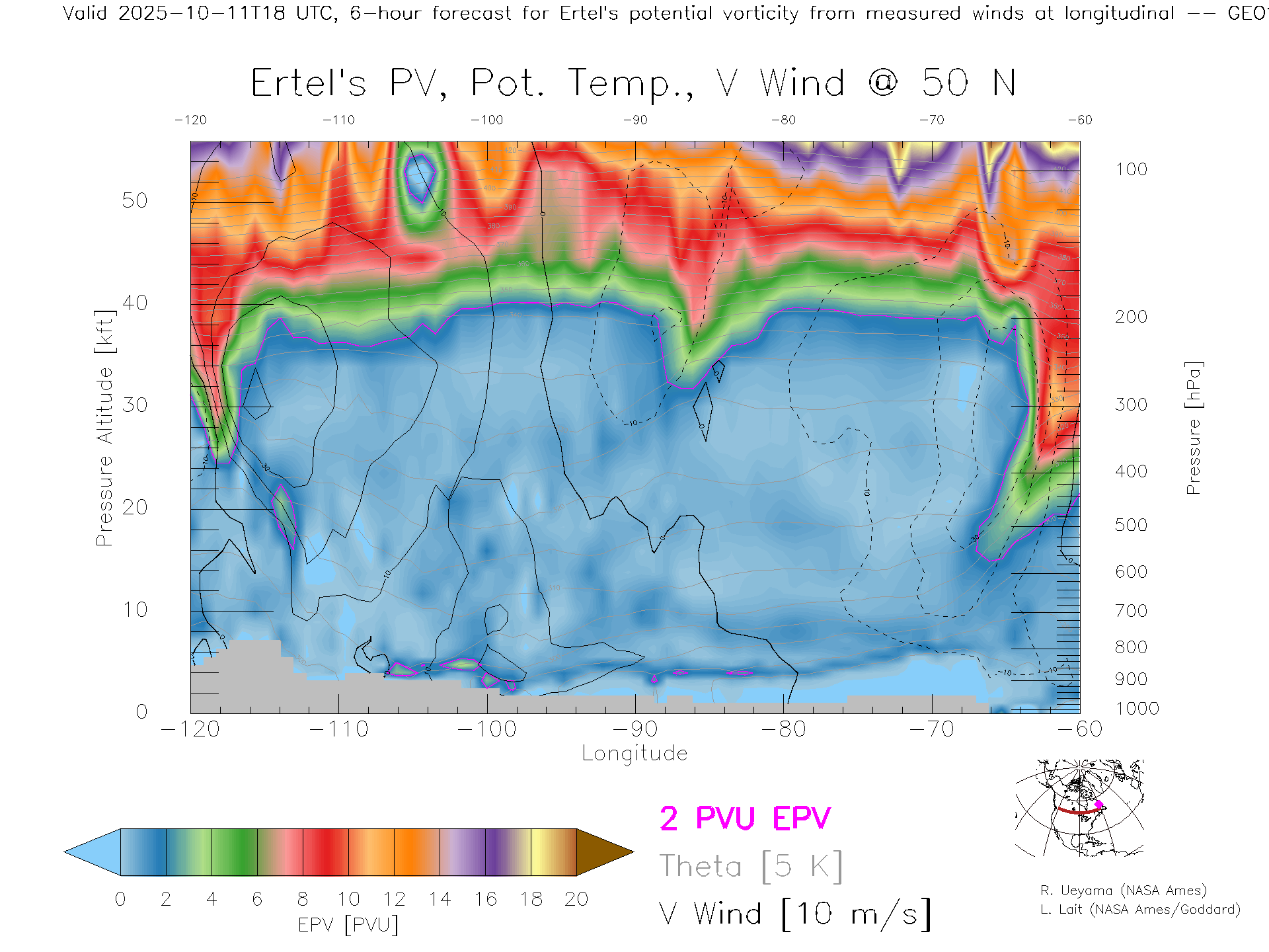 GEOS Forecast PV X-Section (50 N)