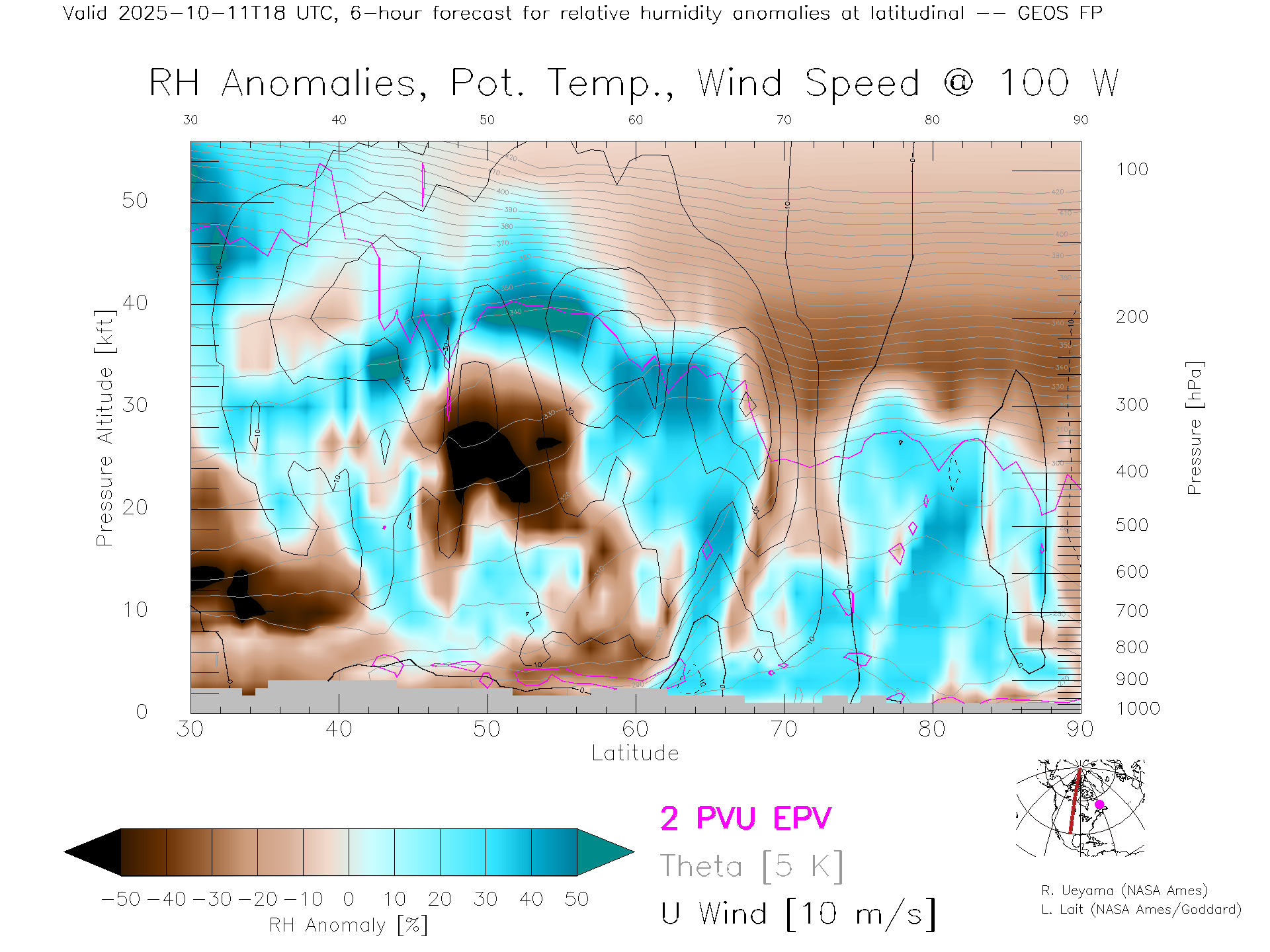 GEOS Forecast Rel. Hum. X-Section (100 W)
