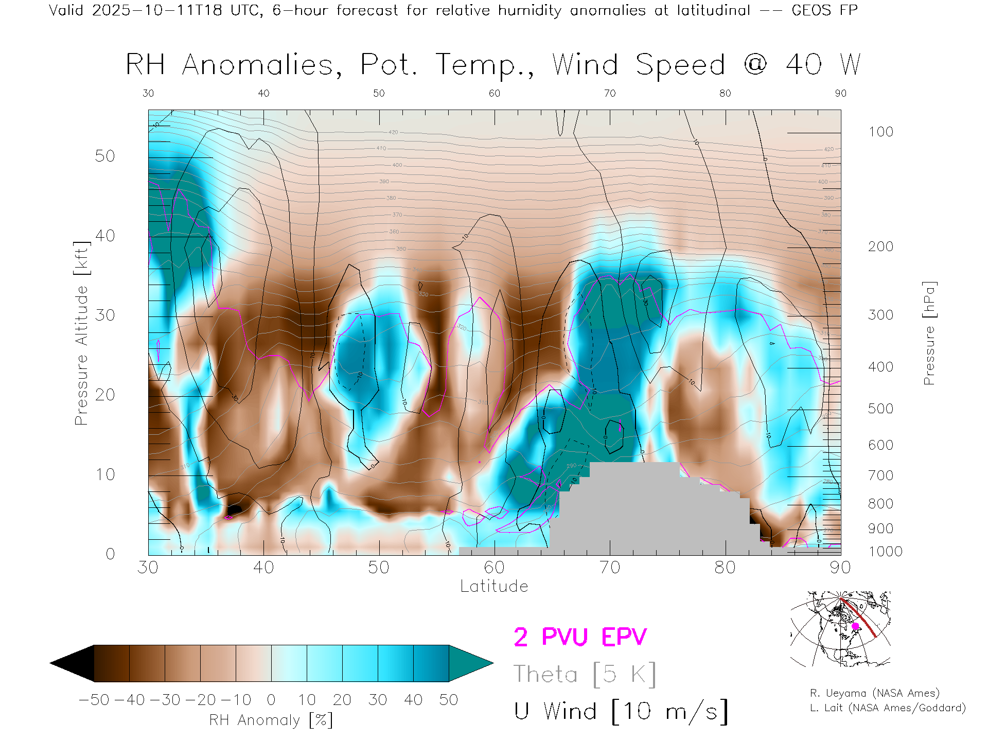 GEOS Forecast Rel. Hum. X-Section (40 W)