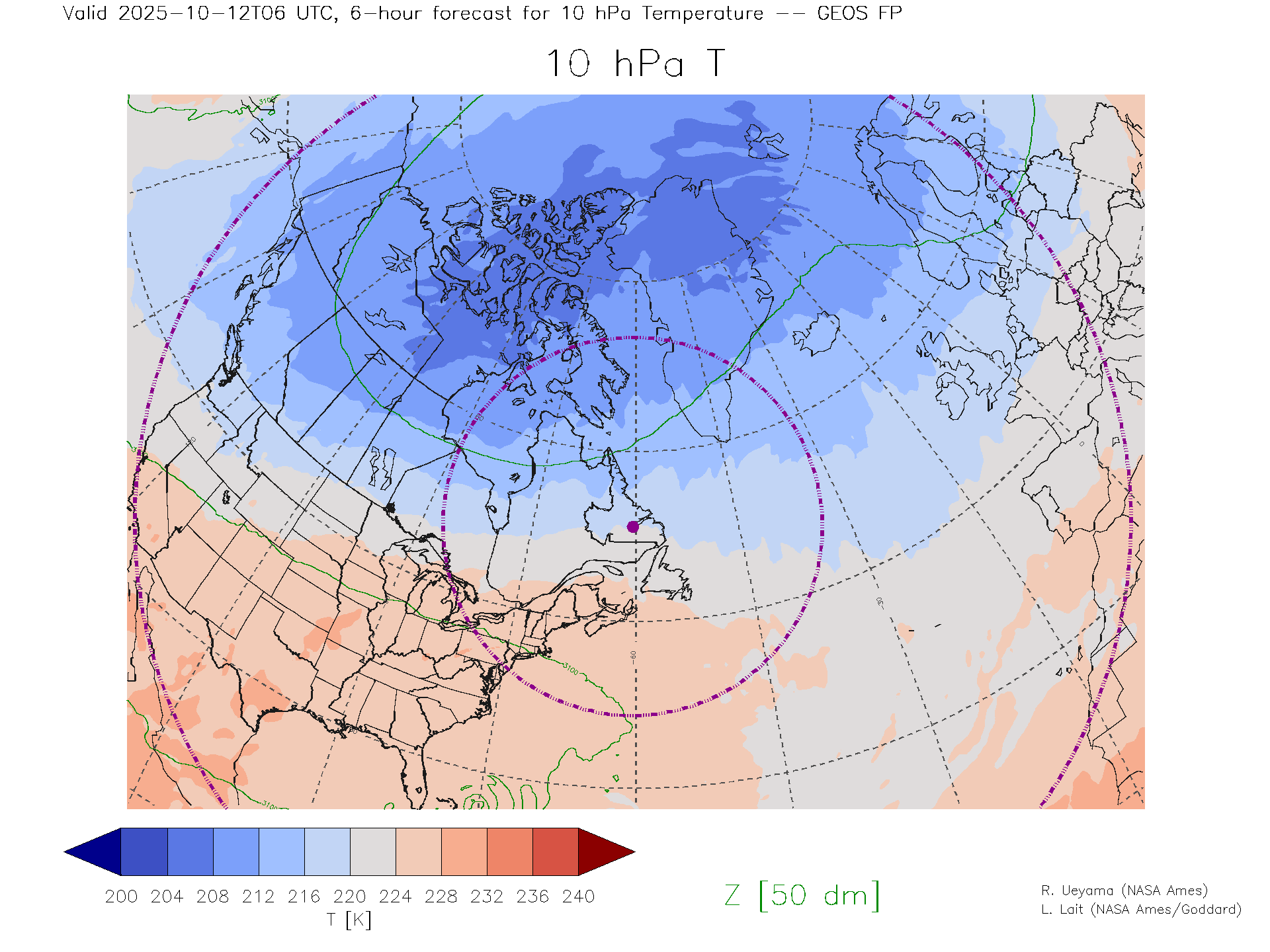 GEOS Forecast 10 hPa Temp.