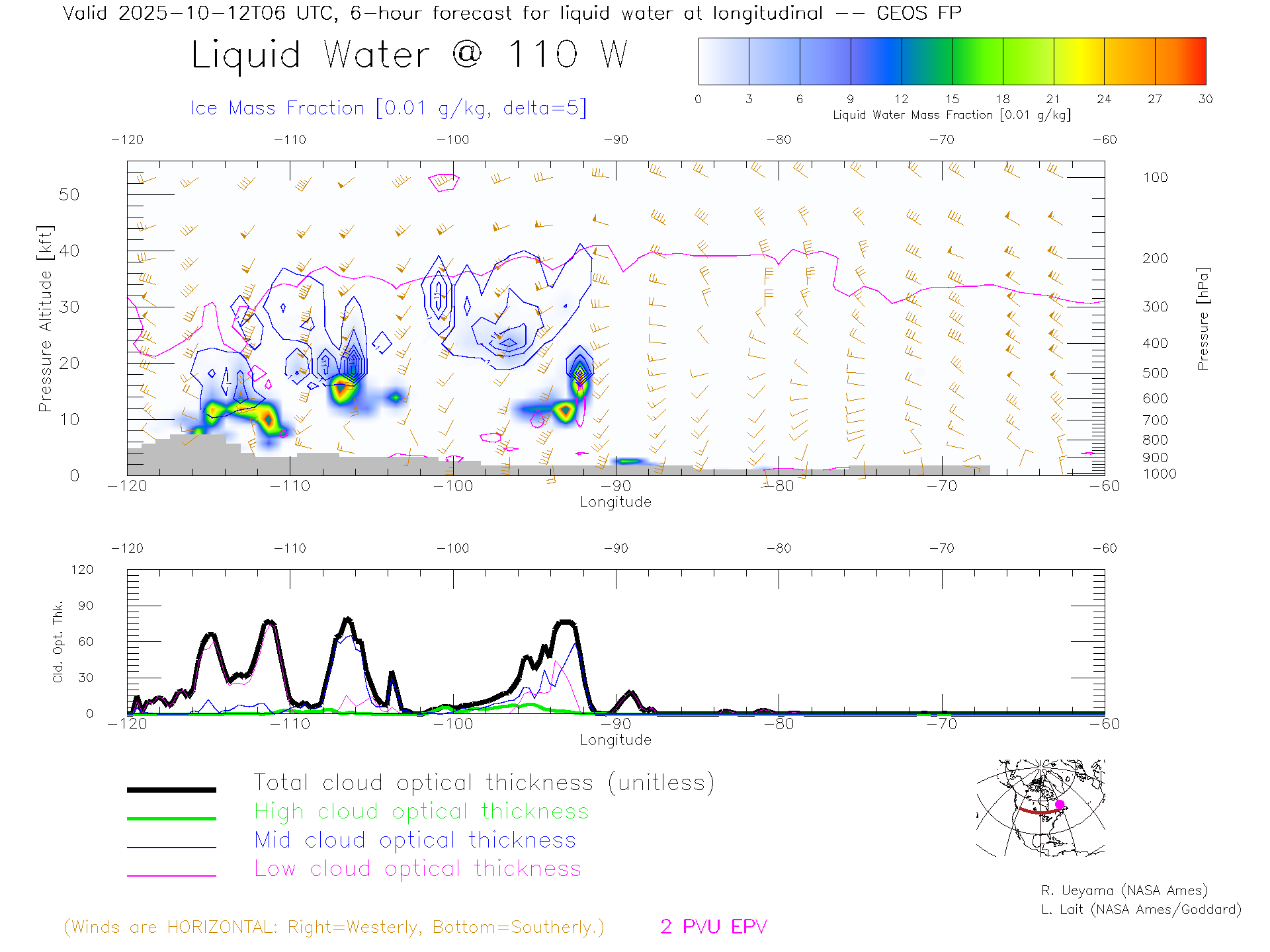 GEOS Forecast Cloud Water Content X-Section (50 N)