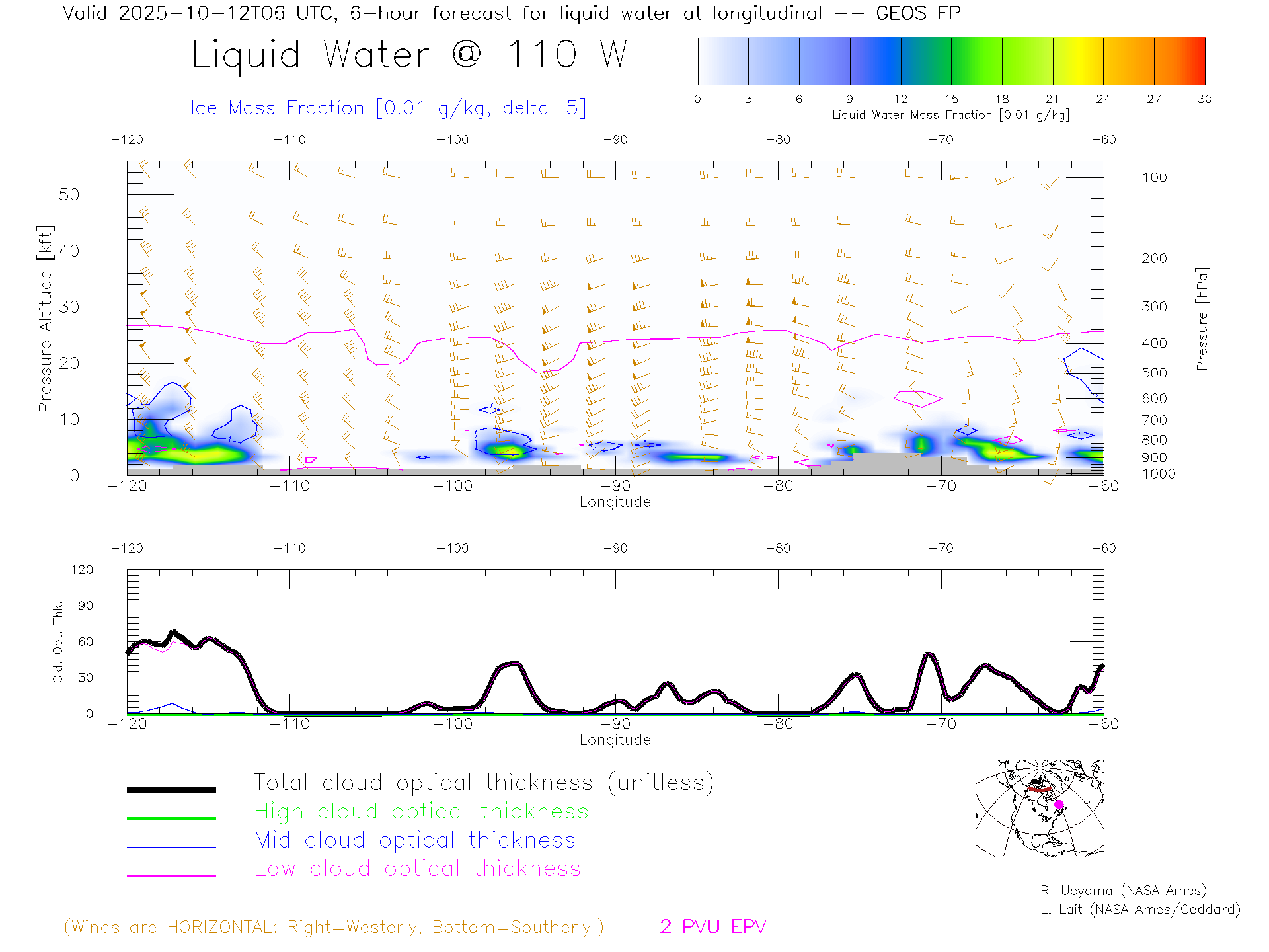 GEOS Forecast Cloud Water Content X-Section (70 N)