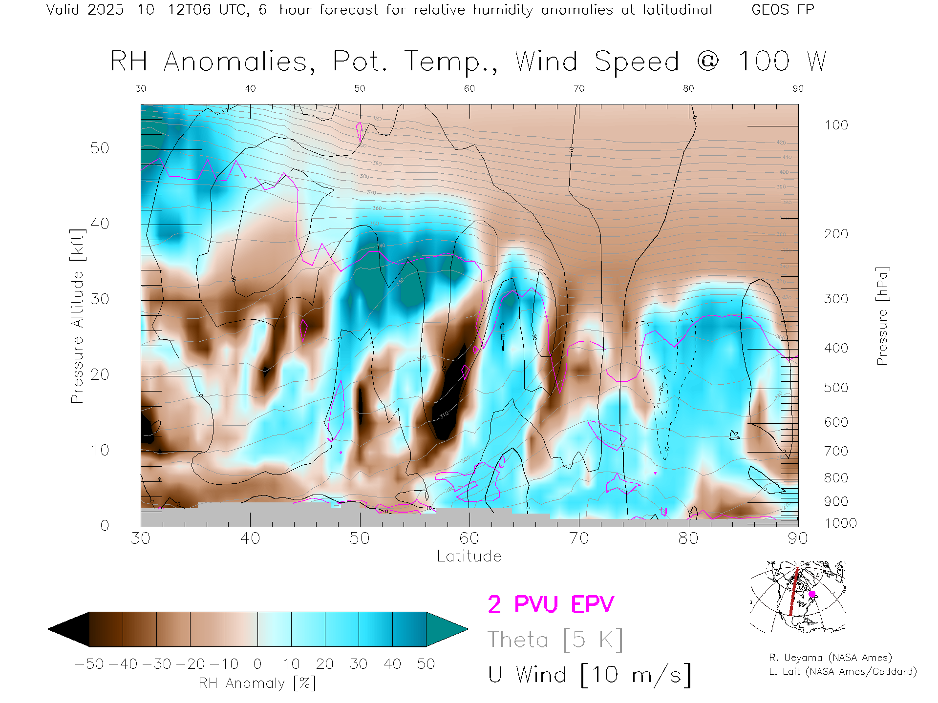 GEOS Forecast Rel. Hum. X-Section (100 W)