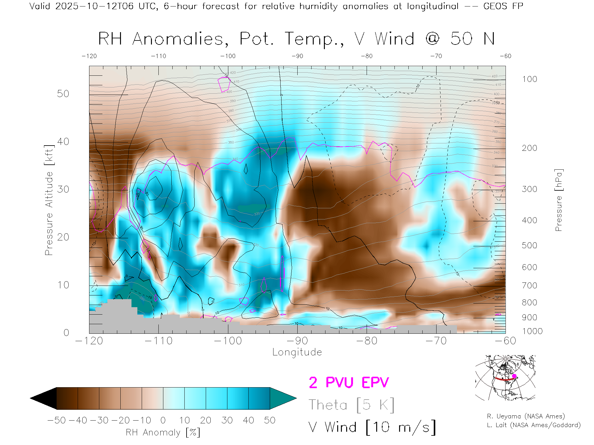 GEOS Forecast Rel. Hum. X-Section (50 N)