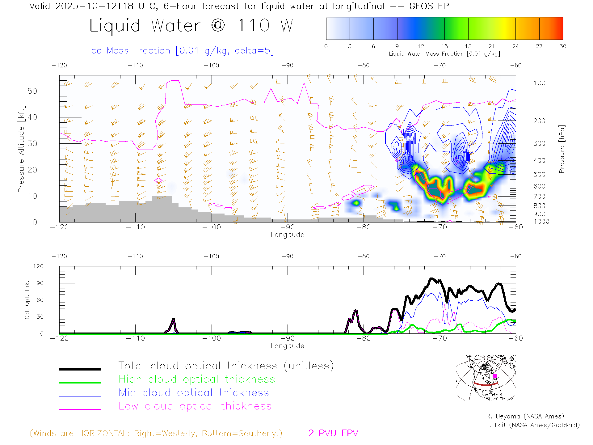 GEOS Forecast Cloud Water Content X-Section (40 N)