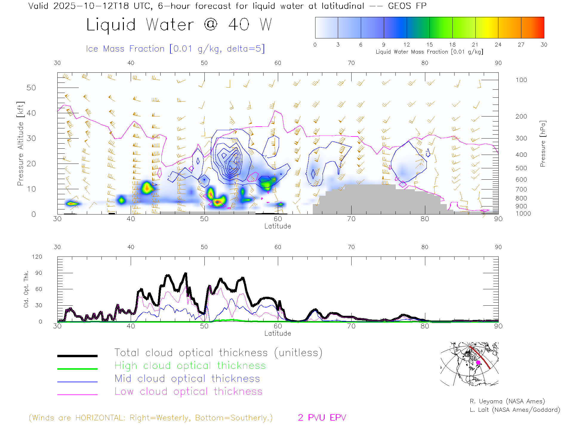 GEOS Forecast Cloud Water Content X-Section (40 W)