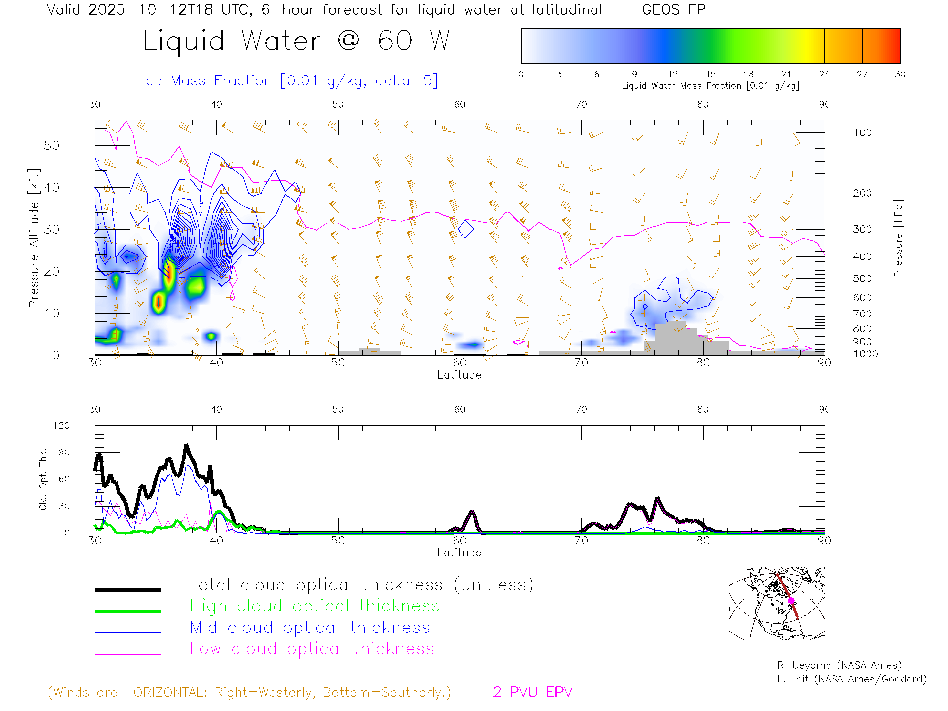 GEOS Forecast Cloud Water Content X-Section (60 W)