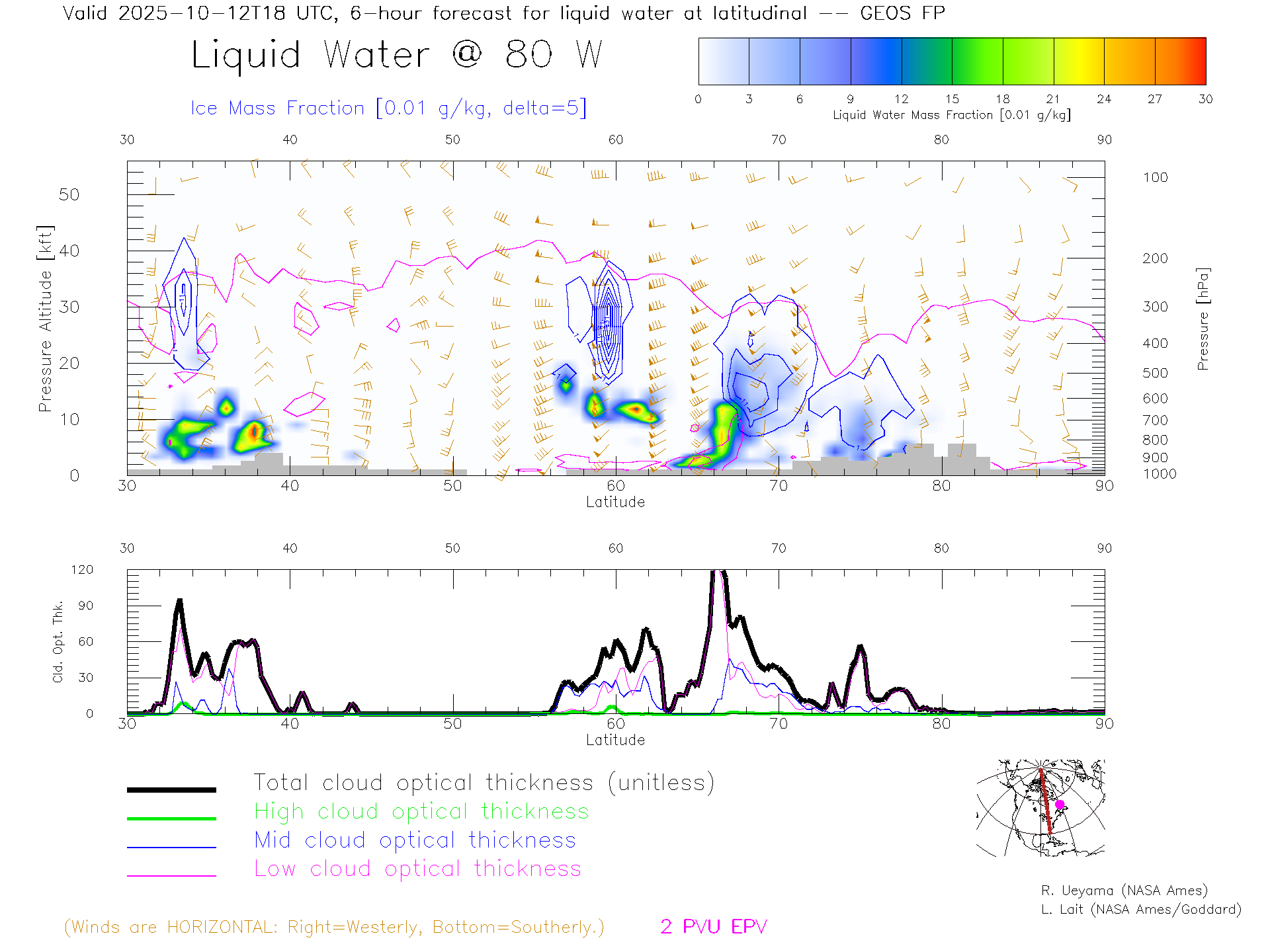 GEOS Forecast Cloud Water Content X-Section (80 W)