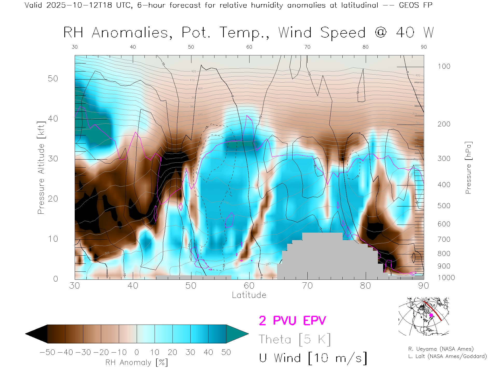 GEOS Forecast Rel. Hum. X-Section (40 W)