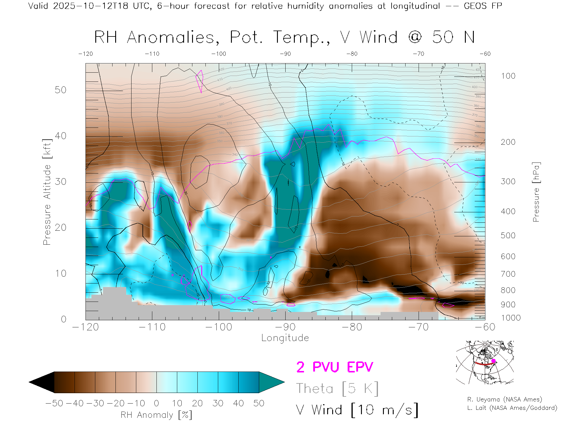GEOS Forecast Rel. Hum. X-Section (50 N)