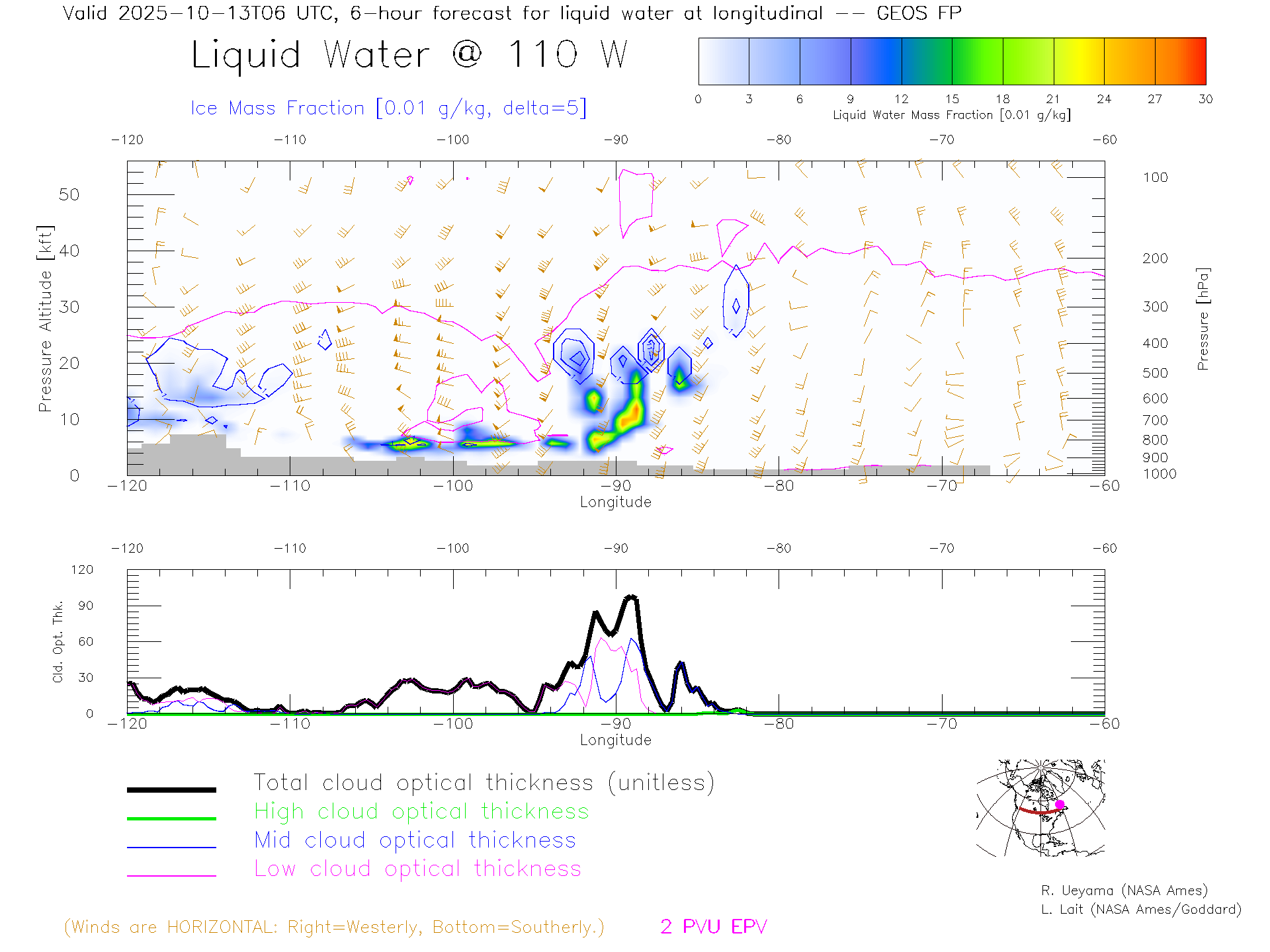 GEOS Forecast Cloud Water Content X-Section (50 N)