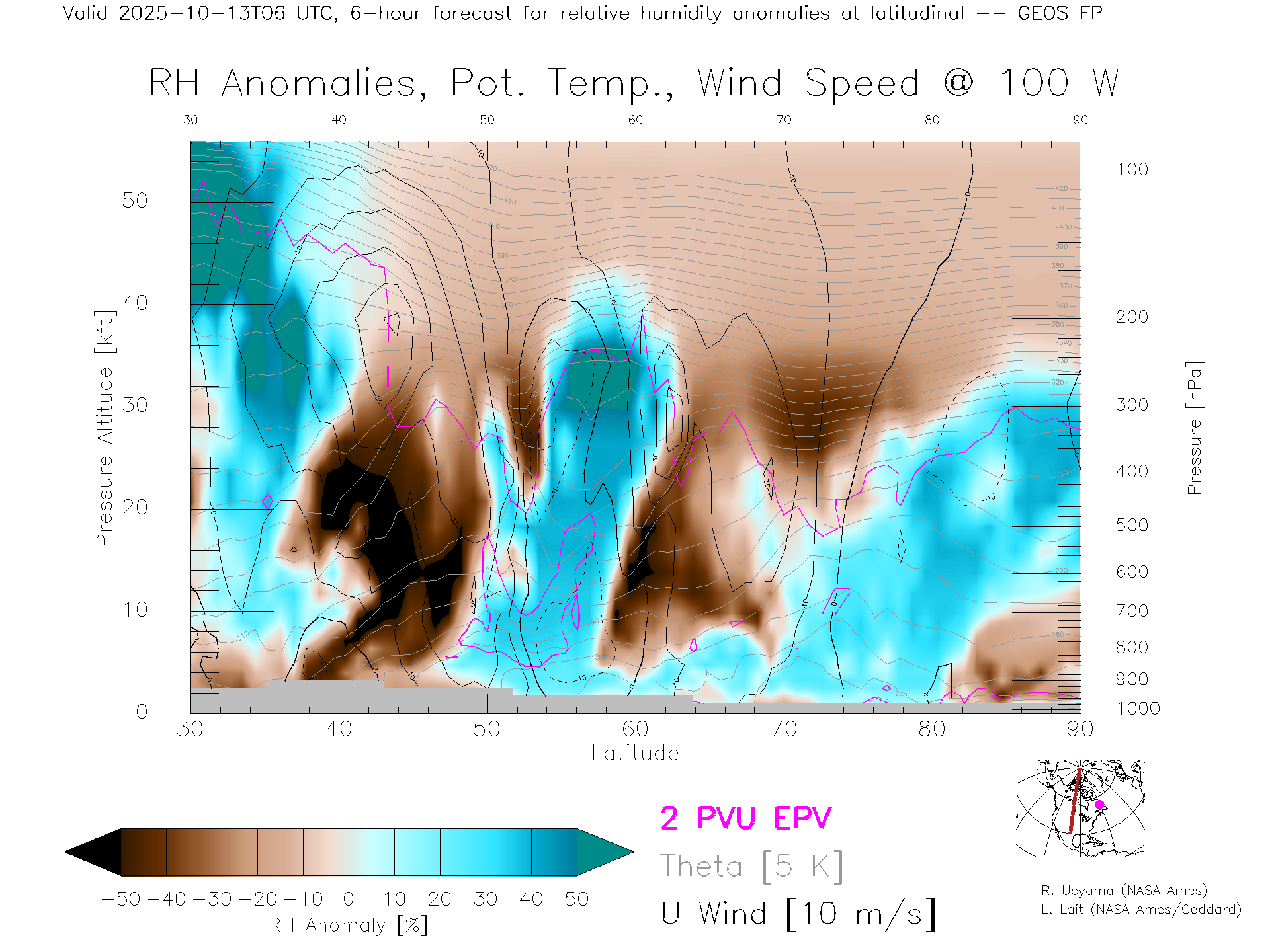 GEOS Forecast Rel. Hum. X-Section (100 W)