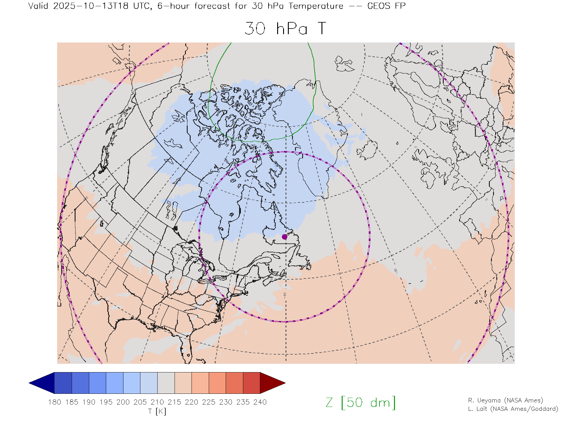 GEOS Forecast 30 hPa Temp.