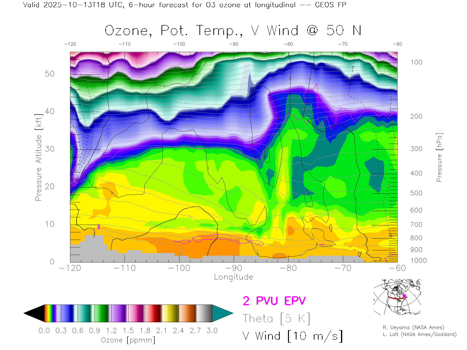 GEOS Forecast Ozone X-Section (50 N)