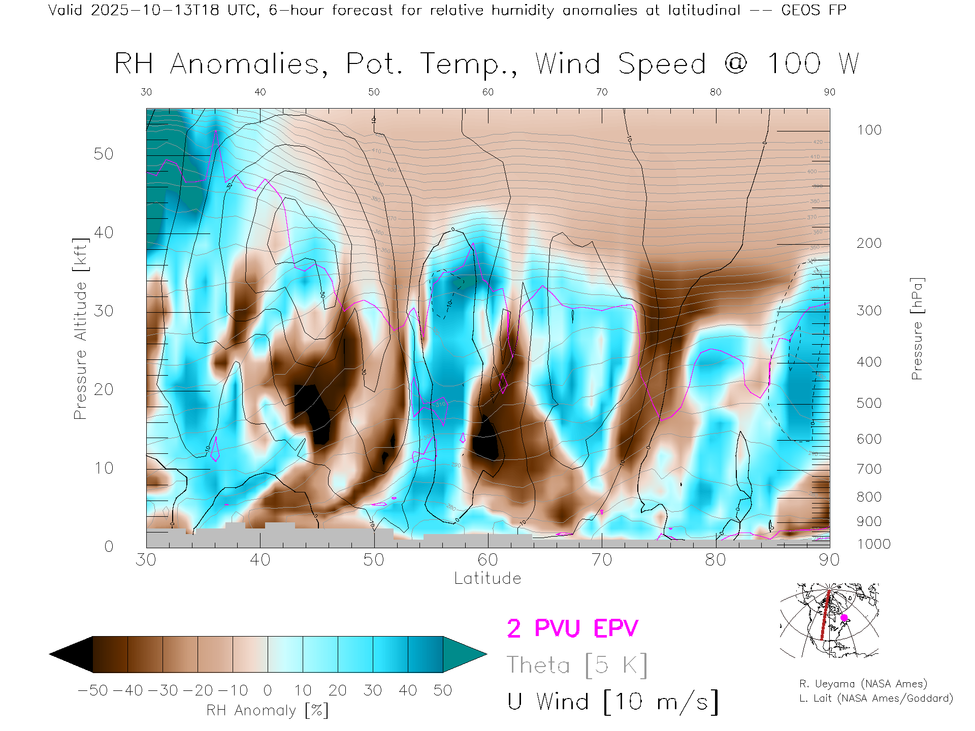 GEOS Forecast Rel. Hum. X-Section (100 W)