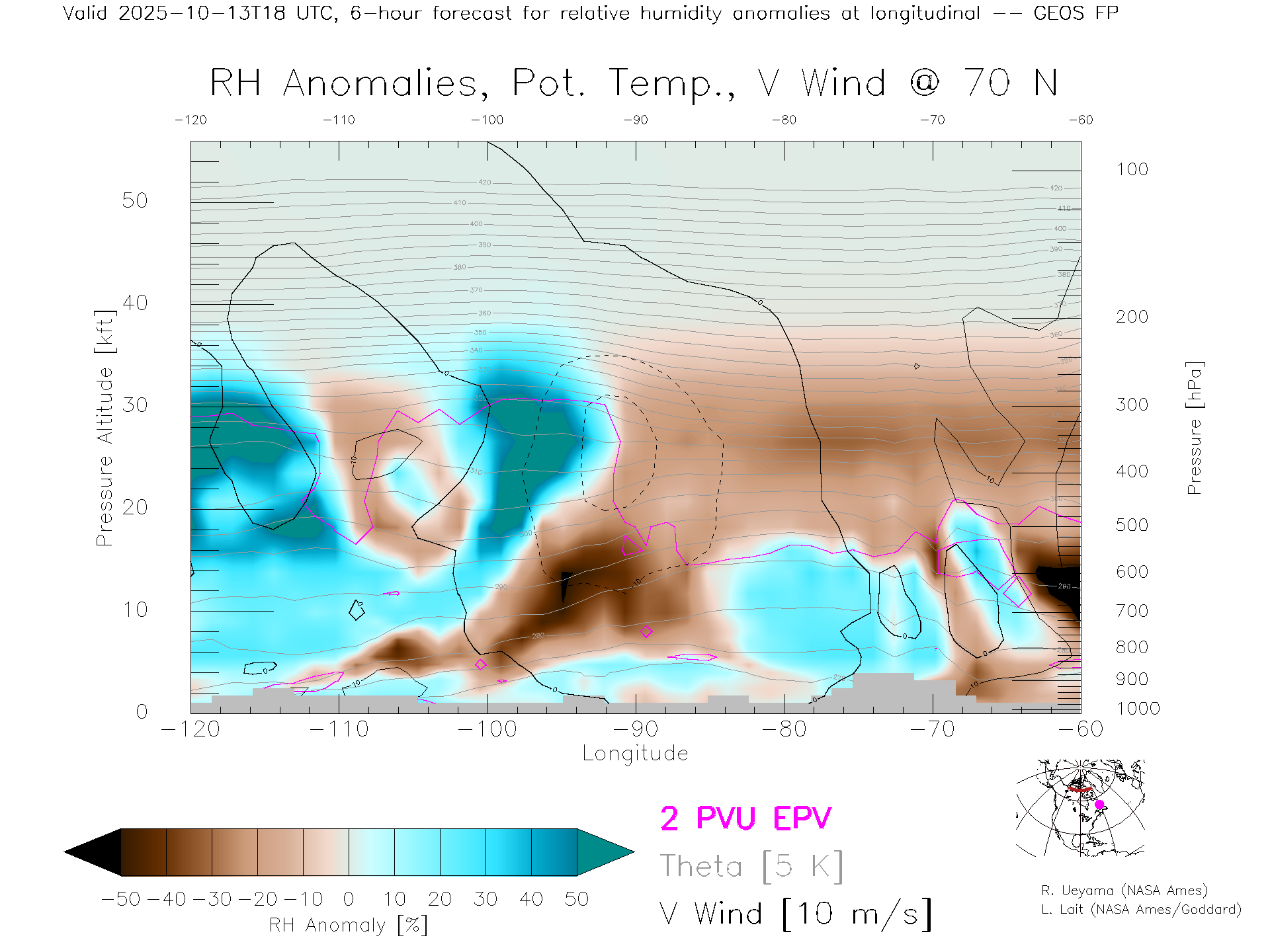GEOS Forecast Rel. Hum. X-Section (70 N)