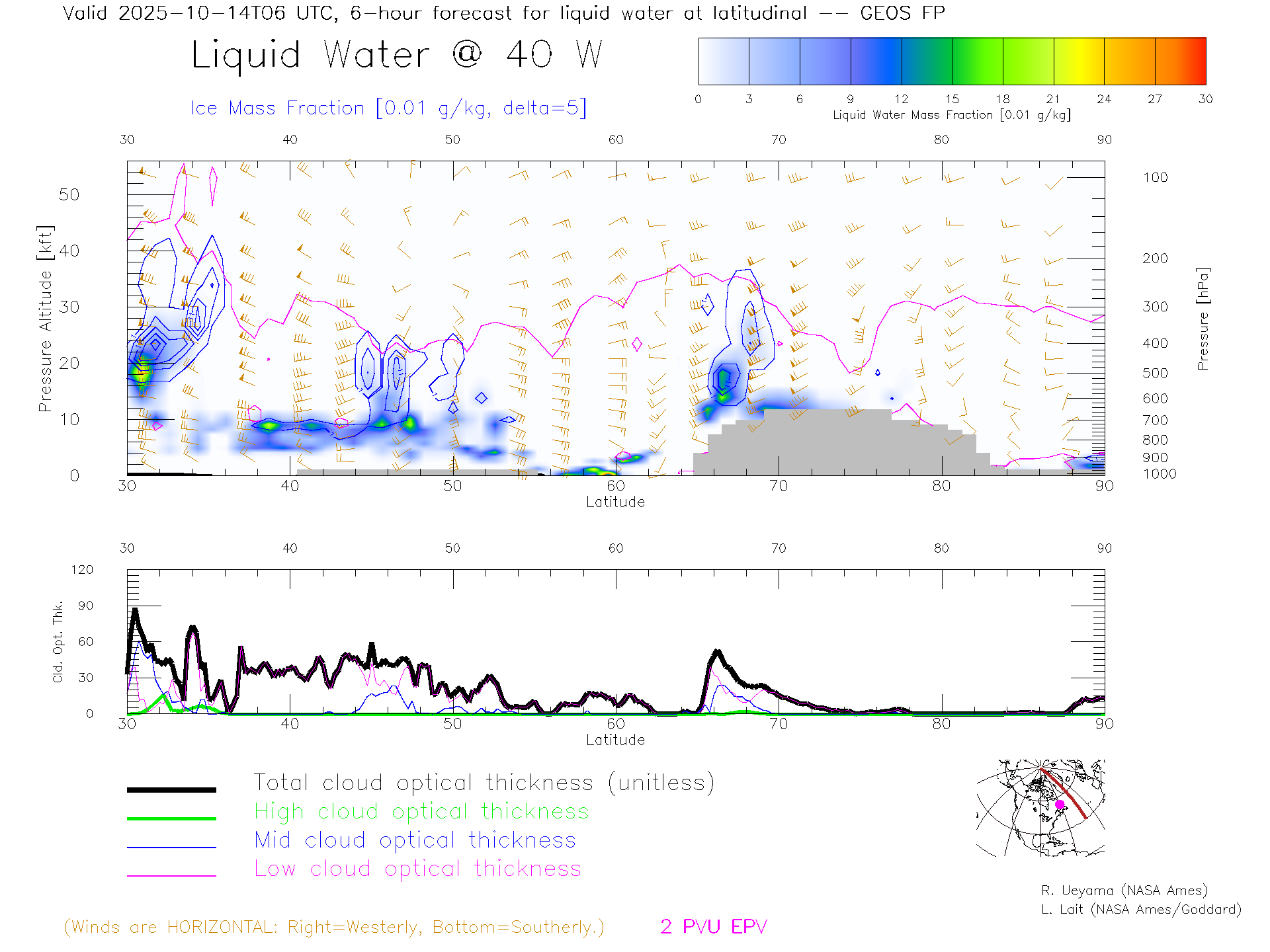 GEOS Forecast Cloud Water Content X-Section (40 W)