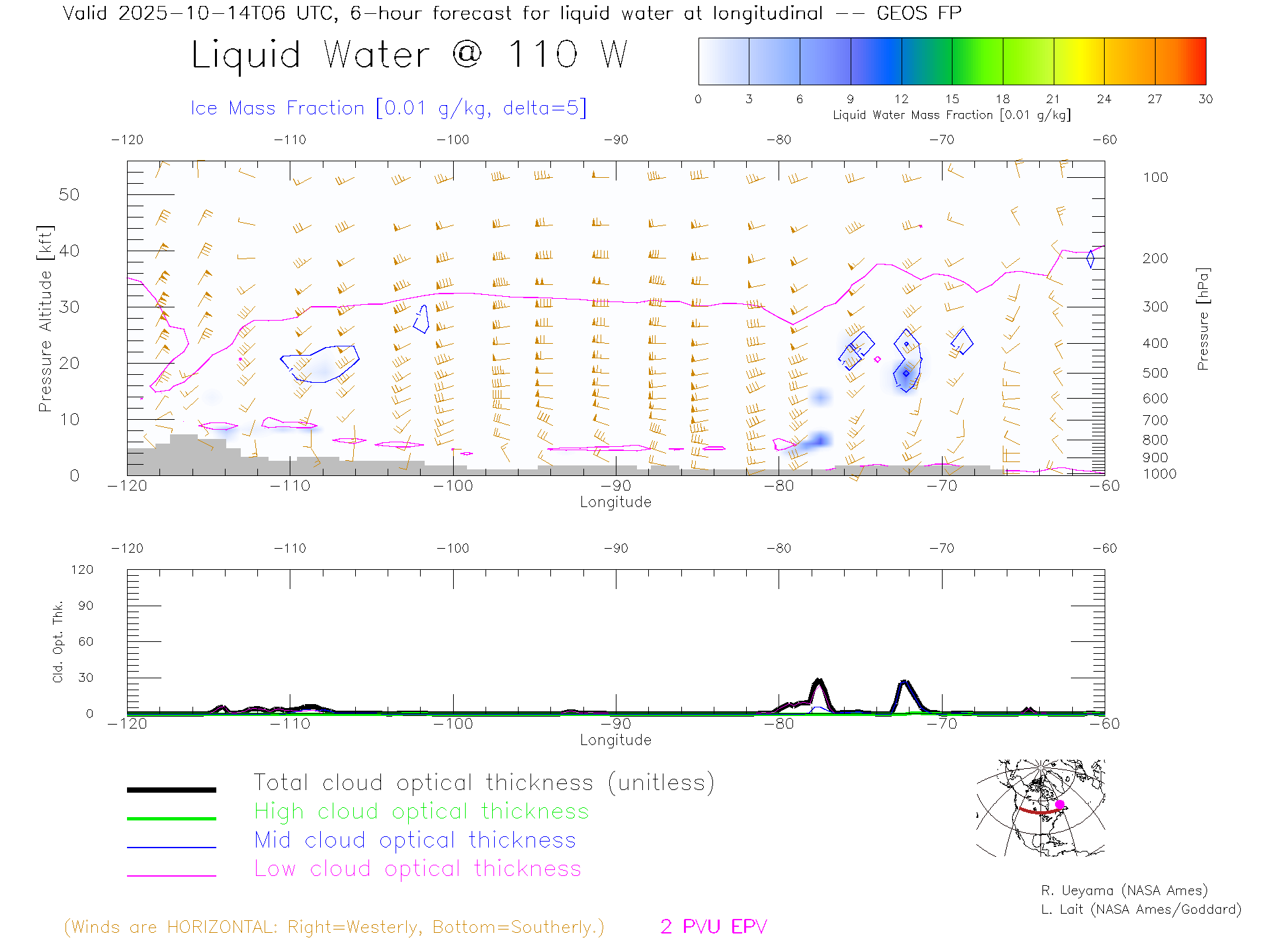 GEOS Forecast Cloud Water Content X-Section (50 N)