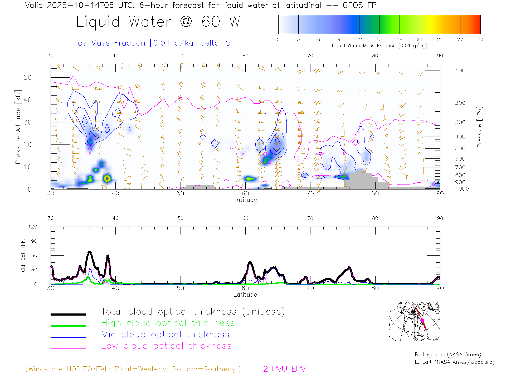GEOS Forecast Cloud Water Content X-Section (60 W)
