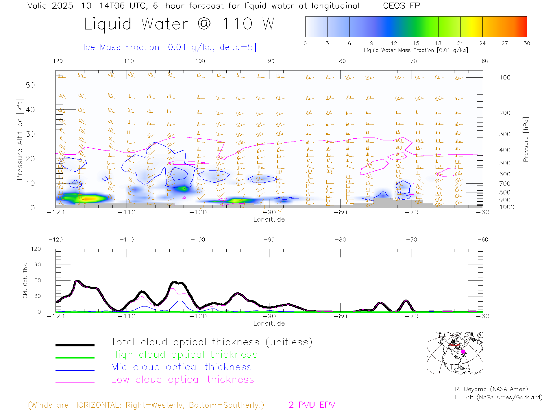 GEOS Forecast Cloud Water Content X-Section (70 N)
