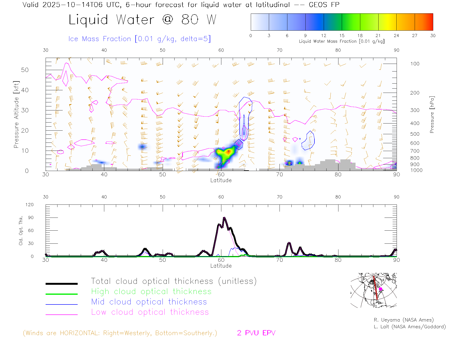 GEOS Forecast Cloud Water Content X-Section (80 W)