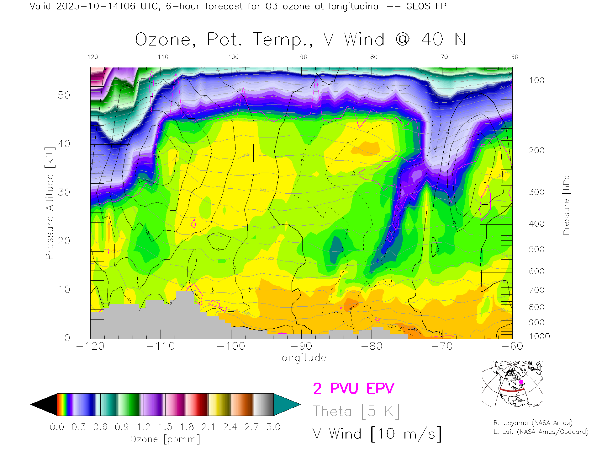 GEOS Forecast Ozone X-Section (40 N)