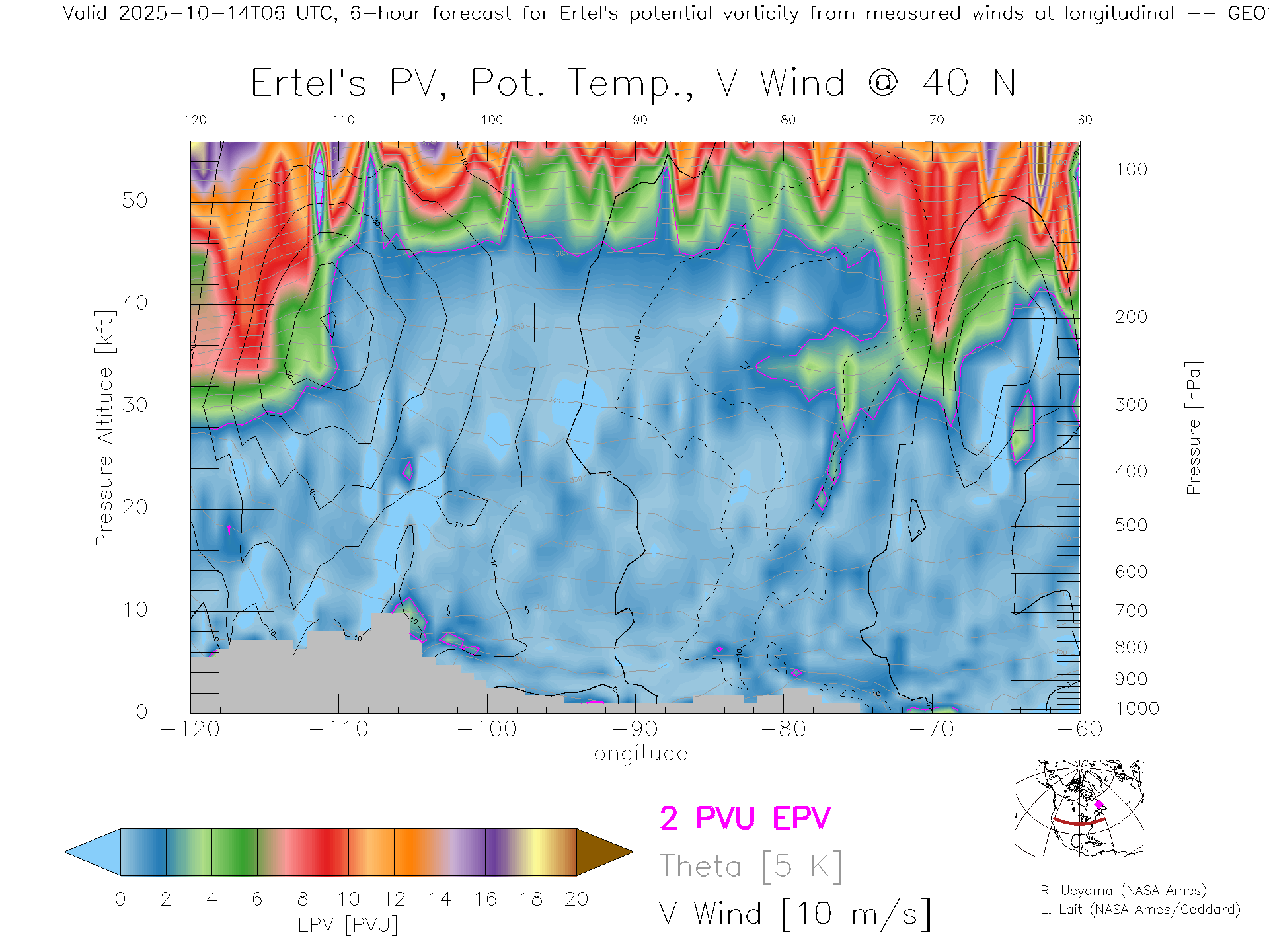 GEOS Forecast PV X-Section (40 N)