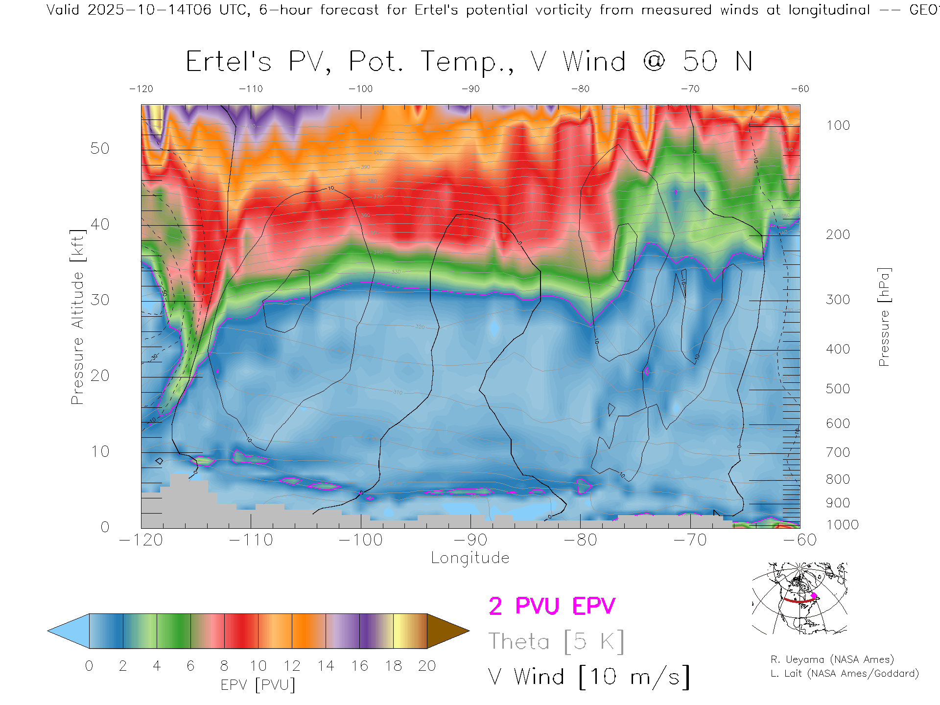 GEOS Forecast PV X-Section (50 N)