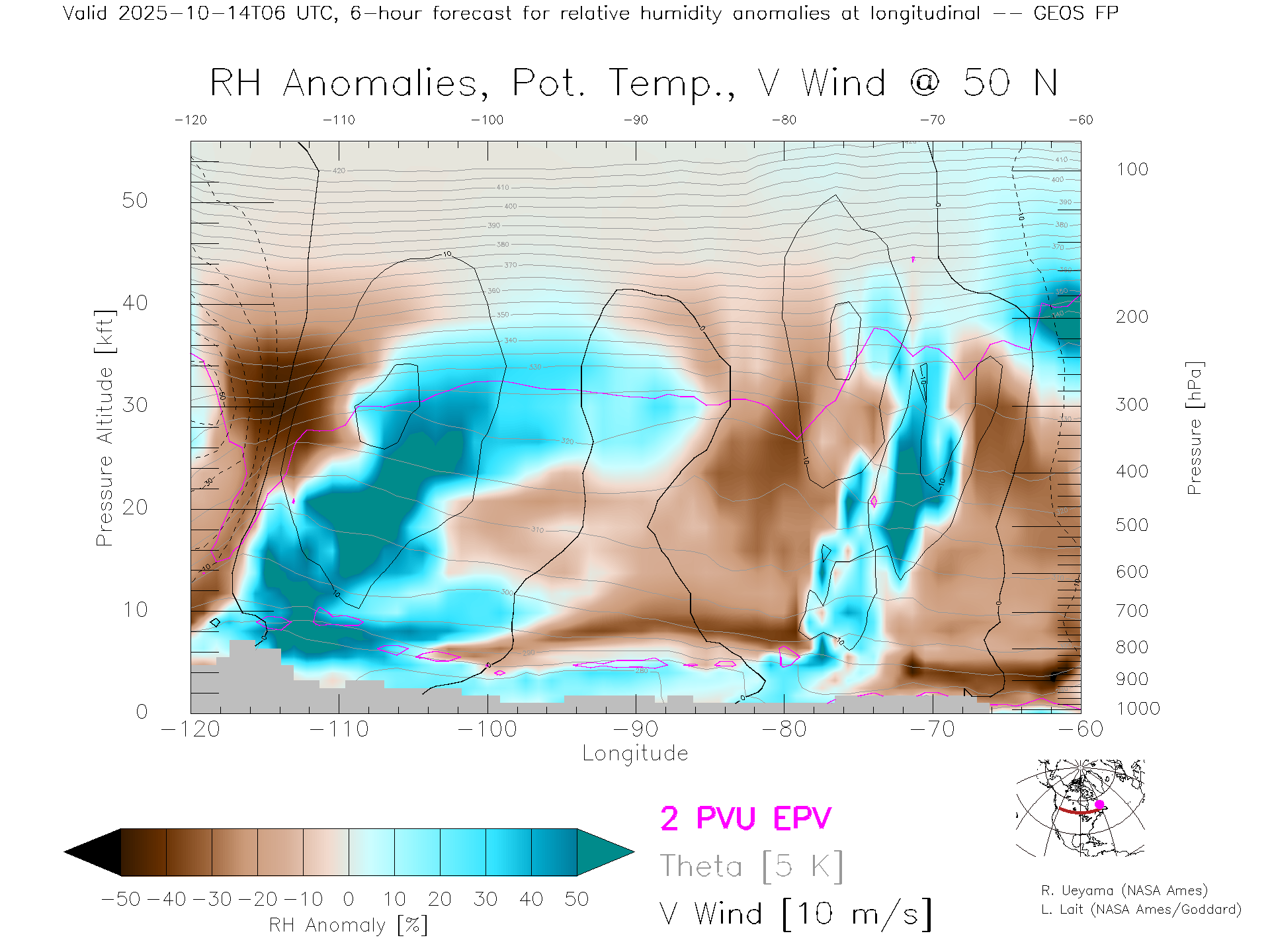 GEOS Forecast Rel. Hum. X-Section (50 N)