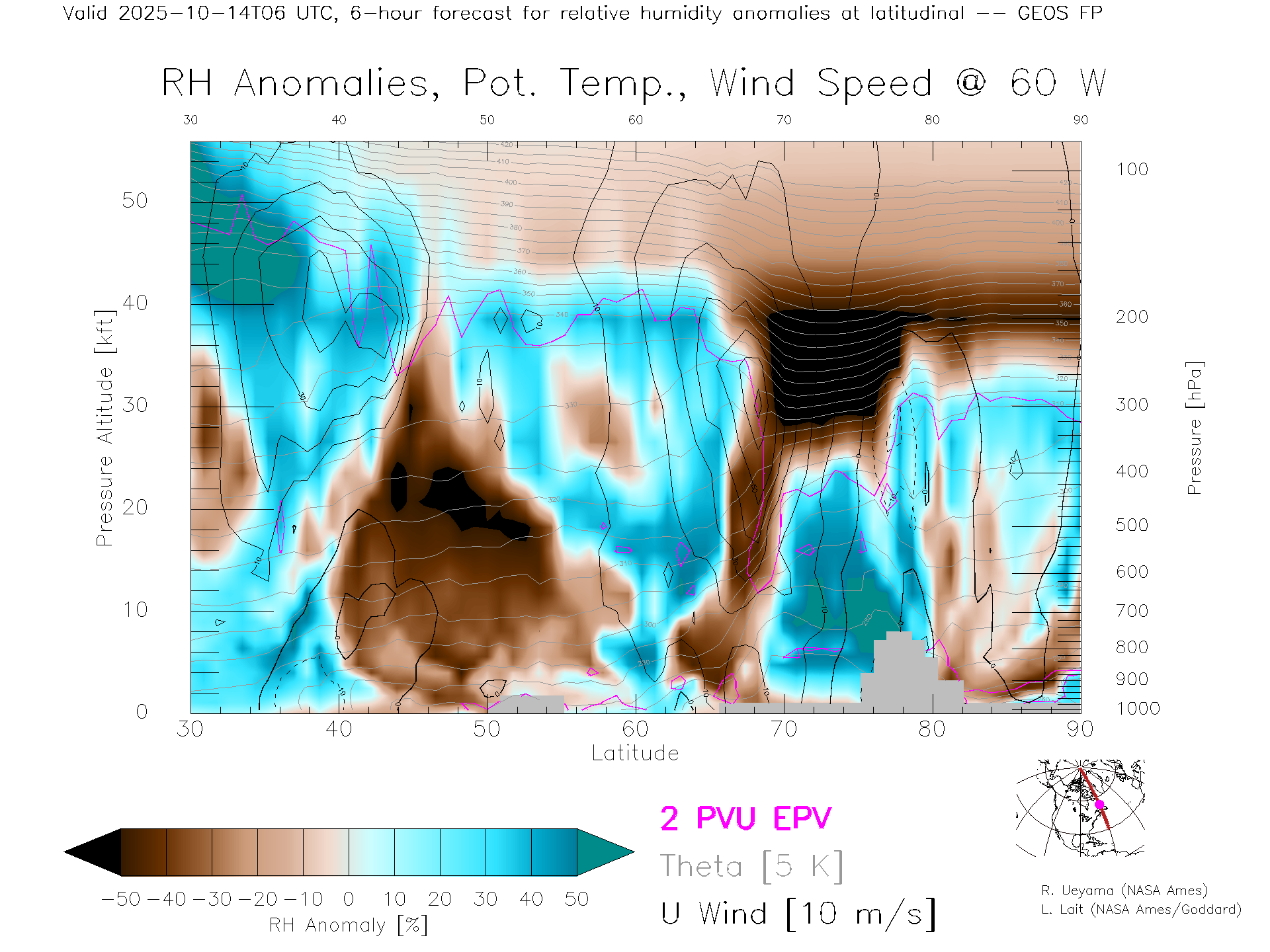 GEOS Forecast Rel. Hum. X-Section (60 W)