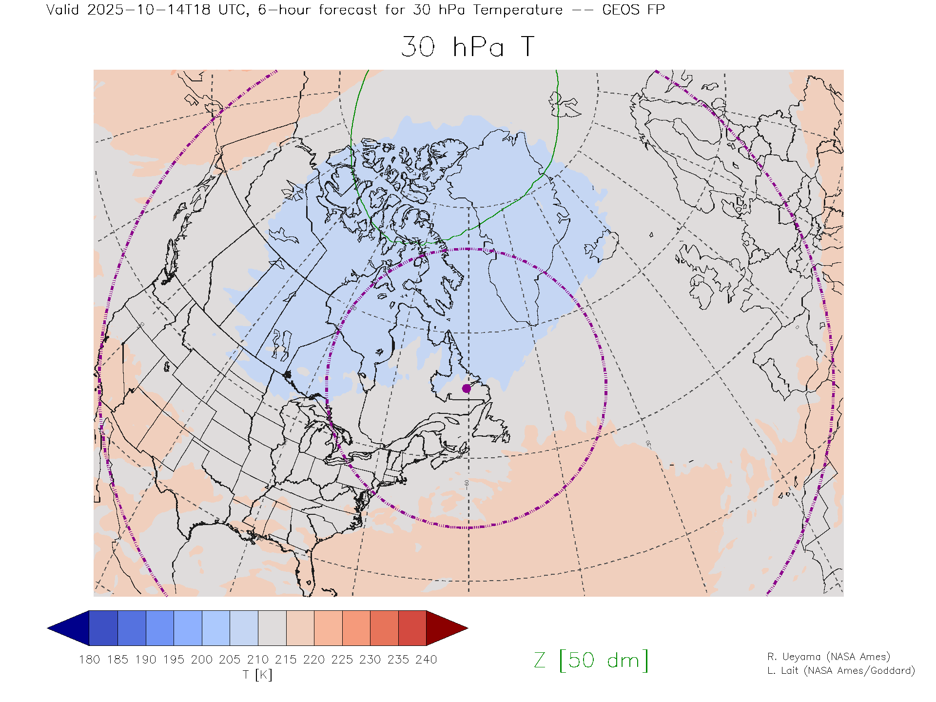 GEOS Forecast 30 hPa Temp.