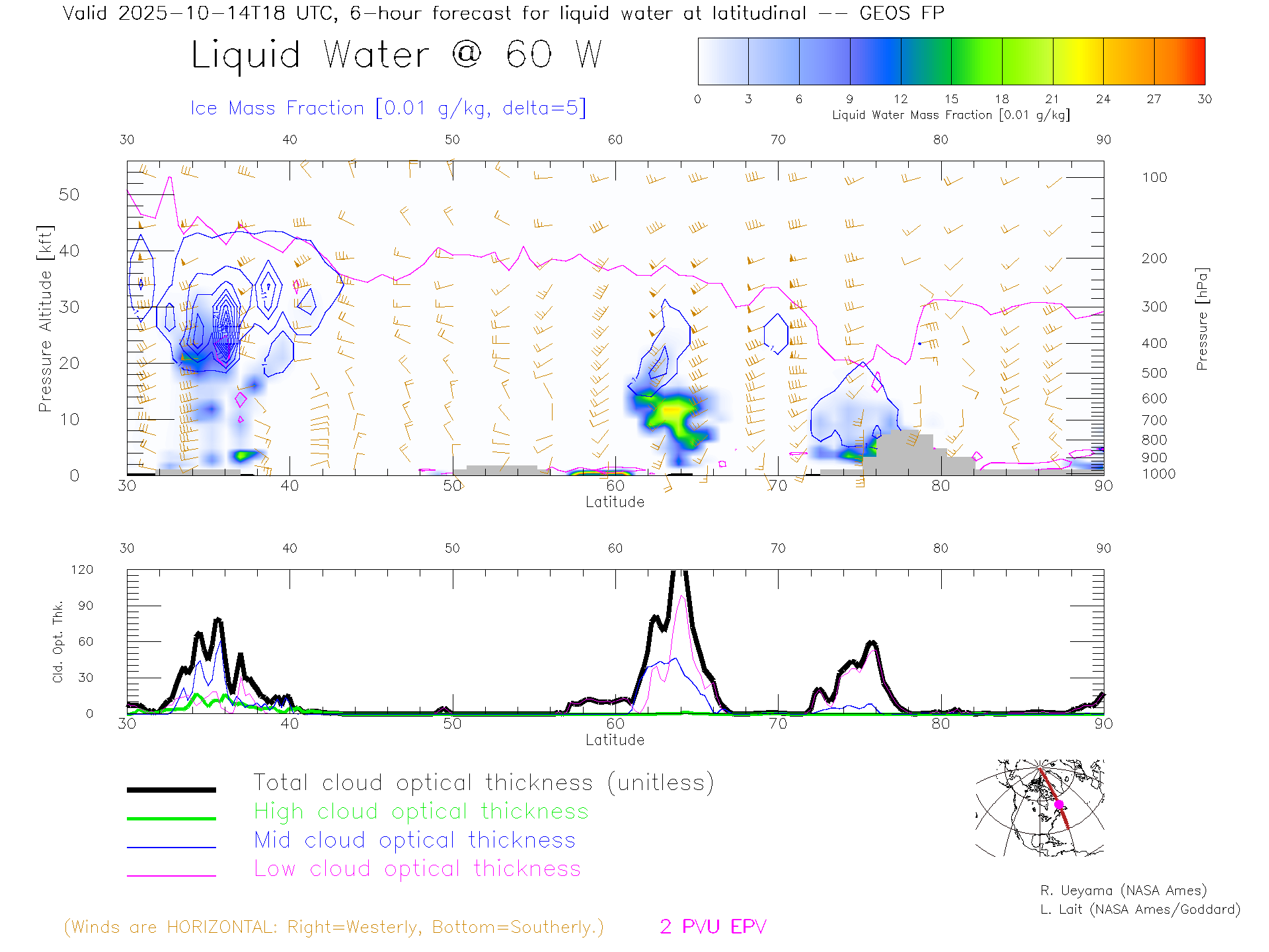 GEOS Forecast Cloud Water Content X-Section (60 W)