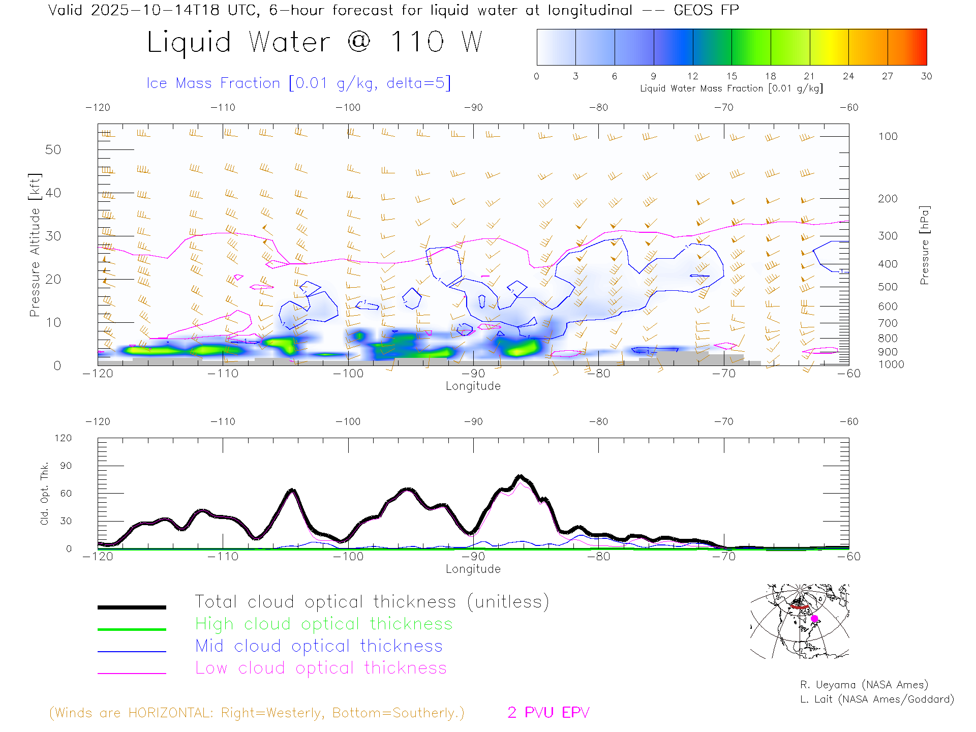 GEOS Forecast Cloud Water Content X-Section (70 N)