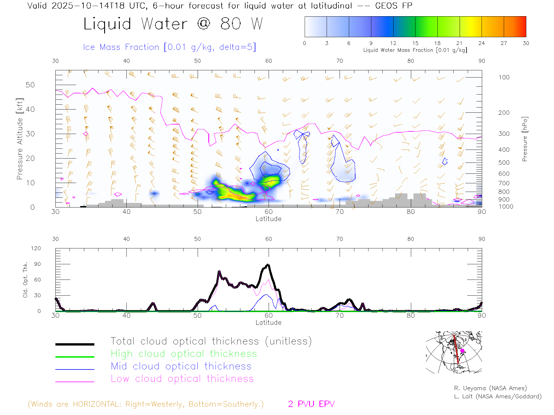 GEOS Forecast Cloud Water Content X-Section (80 W)