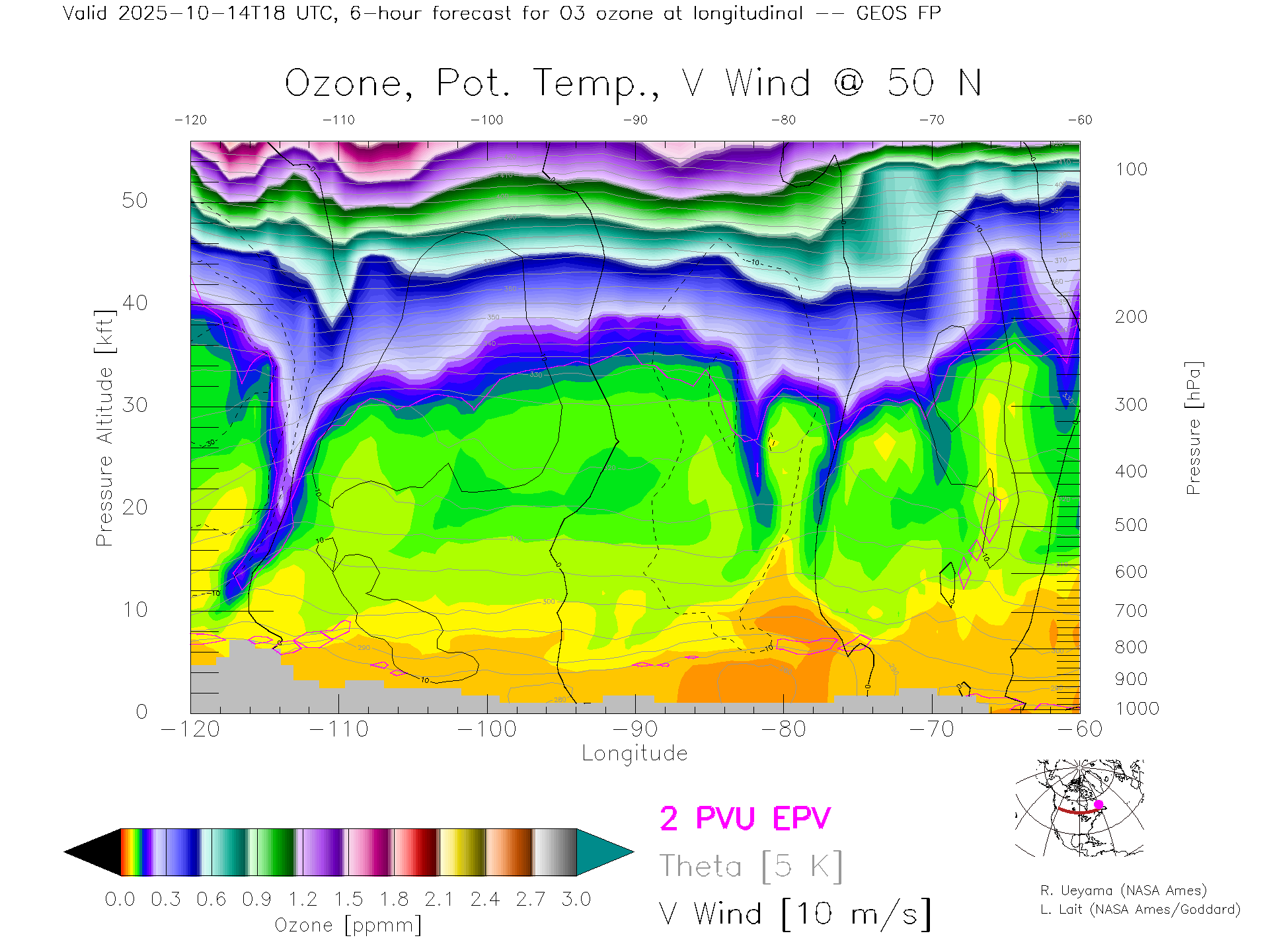 GEOS Forecast Ozone X-Section (50 N)
