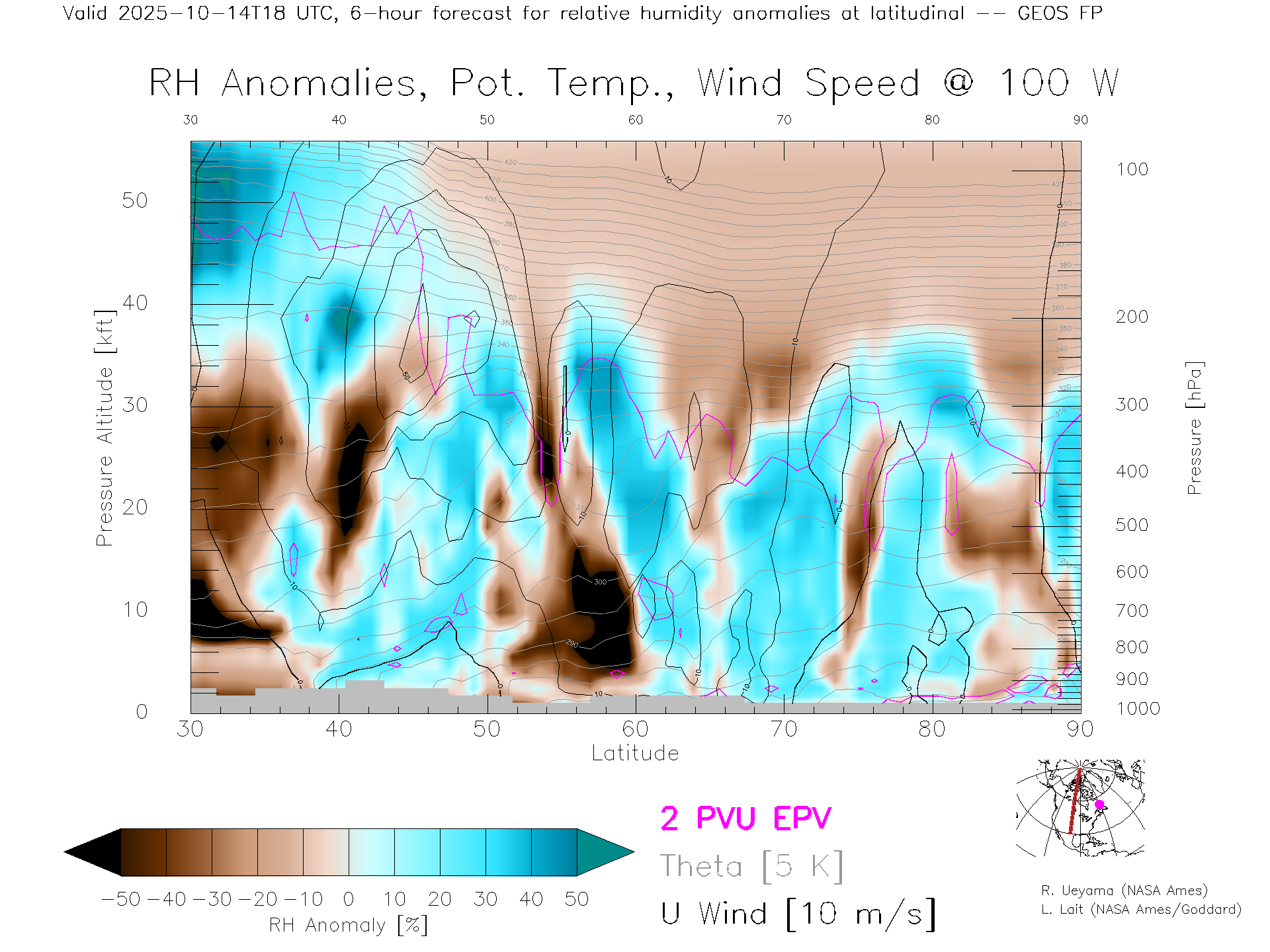 GEOS Forecast Rel. Hum. X-Section (100 W)