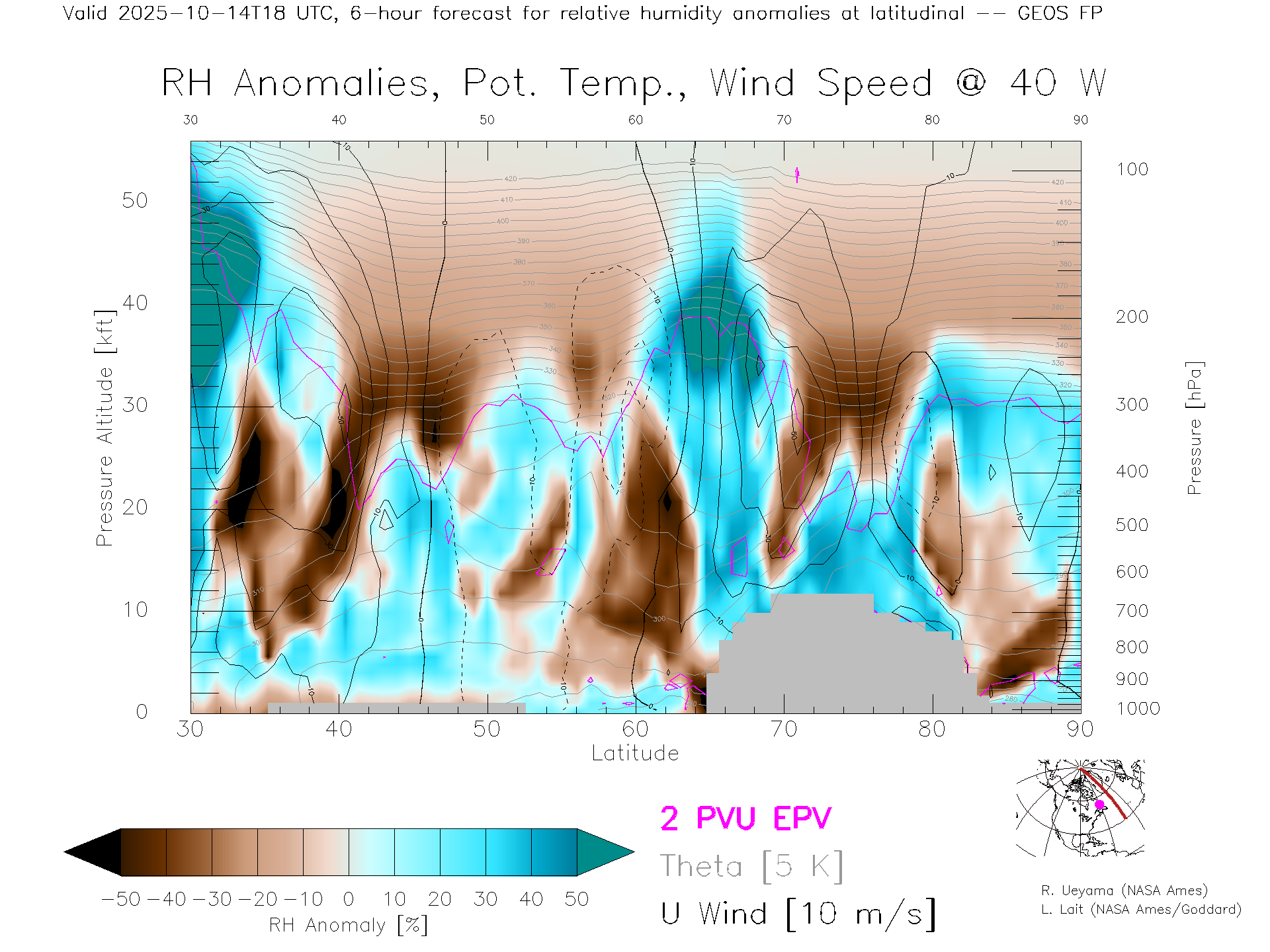 GEOS Forecast Rel. Hum. X-Section (40 W)