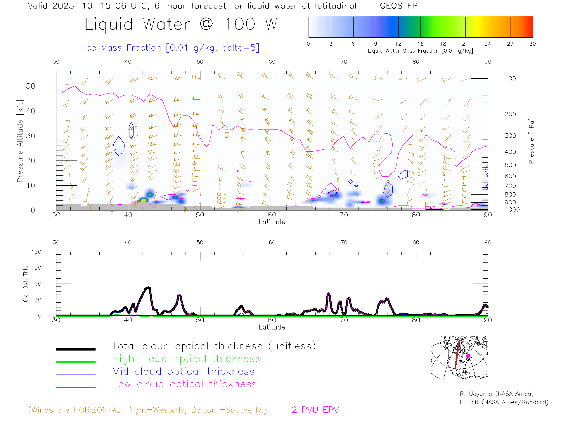 GEOS Forecast Cloud Water Content X-Section (100 W)