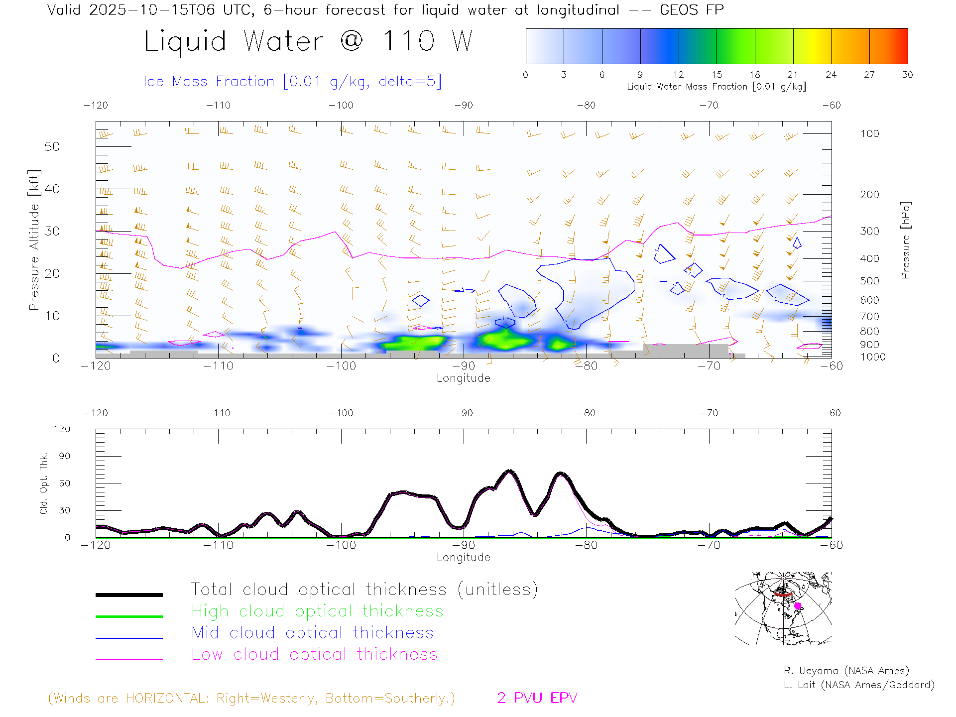 GEOS Forecast Cloud Water Content X-Section (70 N)