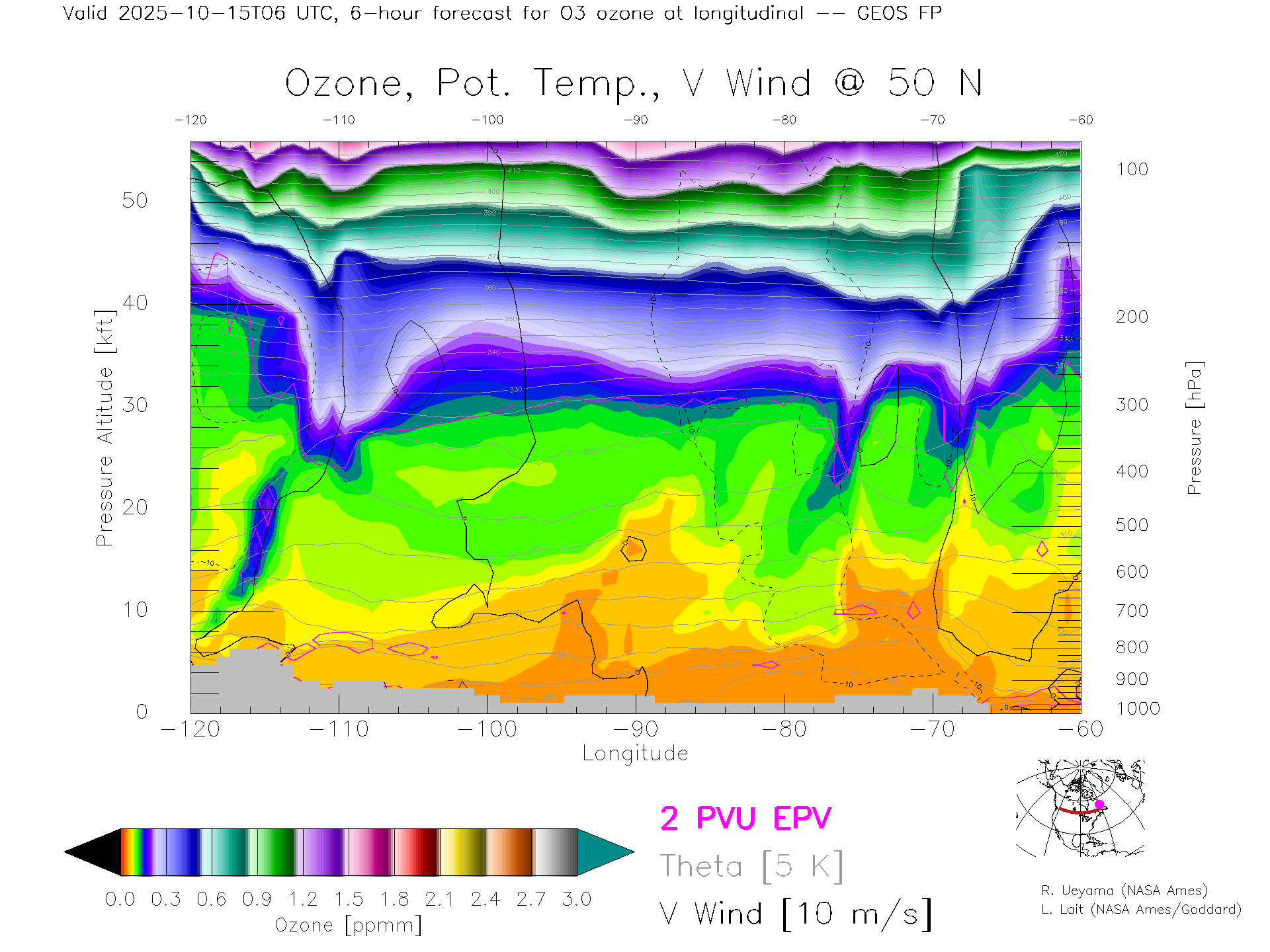 GEOS Forecast Ozone X-Section (50 N)